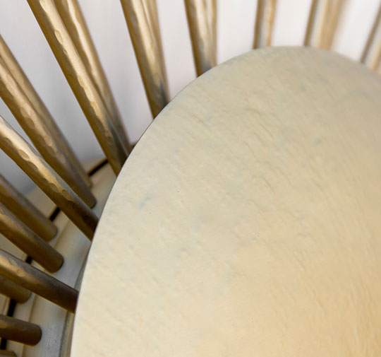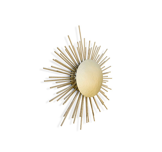 In an attempt to reinterpret the sun in a contemporary lighting item, our designers conceived SOLEIL Wall Light. With a structure in hammered brass, this wall sconce will expand all over any room like sunlight rays. Discreet yet remarkable, brass wall light design will bring warm light to modern home decor.