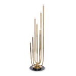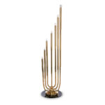 Stardust floor lamp is a mid-century modern revolving lamp that was inspired by the cosmic orbits. The main goal of this lighting design is to light up your mid-century modern home just like the stars do it at night. Constructed out of brass tubing into a rounded oblong shape, this modern floor lamp will shine brightly due to the light cast by the bulbs arranged in the same way as a candelabra. Ideal for a mid-century modern dining room and a vintage living room, this gold-plated floor lamp will bring an astral beauty to your space.