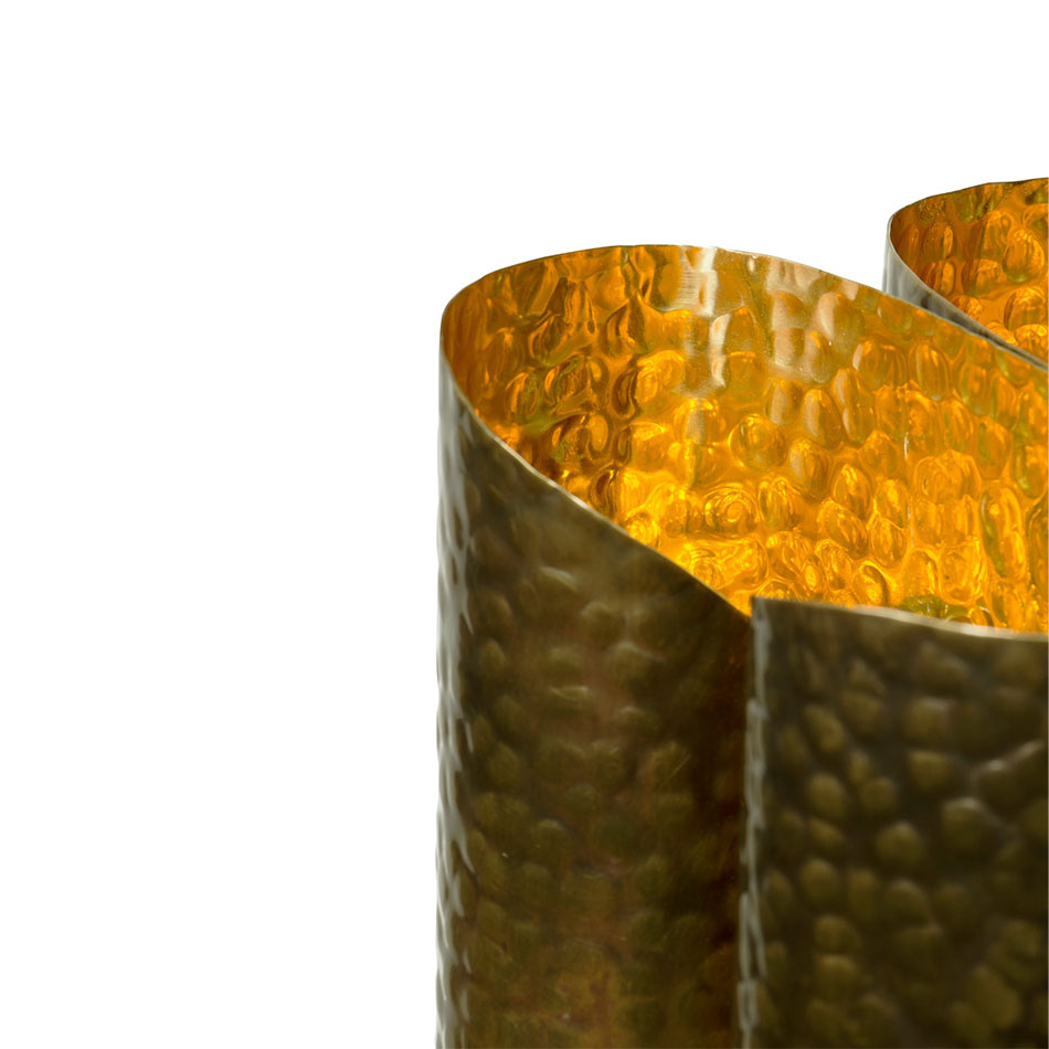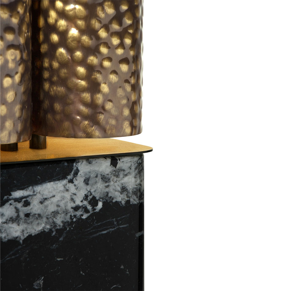 In ancient manuscripts, messages were written on vellum, a fine and translucent material. Featuring a top in glossy hammered aged brass and a base in Nero Marquina marble, every story you create in your home will be highlighted by the warmth of VELLUM Table Light. Pair this brass and marble table light with an accent chair and relax with your latest read.