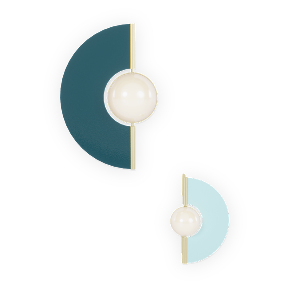 Yoyo wall sconce is a playful and minimalist design that exudes emotion and rhythm, infusing any room with vibrancy. Handmade in clear glass, it offers color customization options. Metal details and a pearly glass bubble adds sophistication in two sizes, combining multiple pieces allows you to create dynamic wall features for your design project.