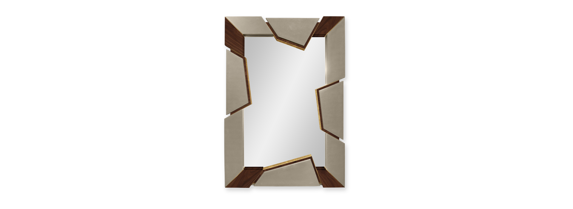 Polished Brass , Grey Leather , Smoked Mirror , Walnut Root |
