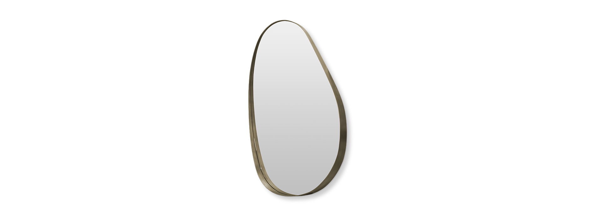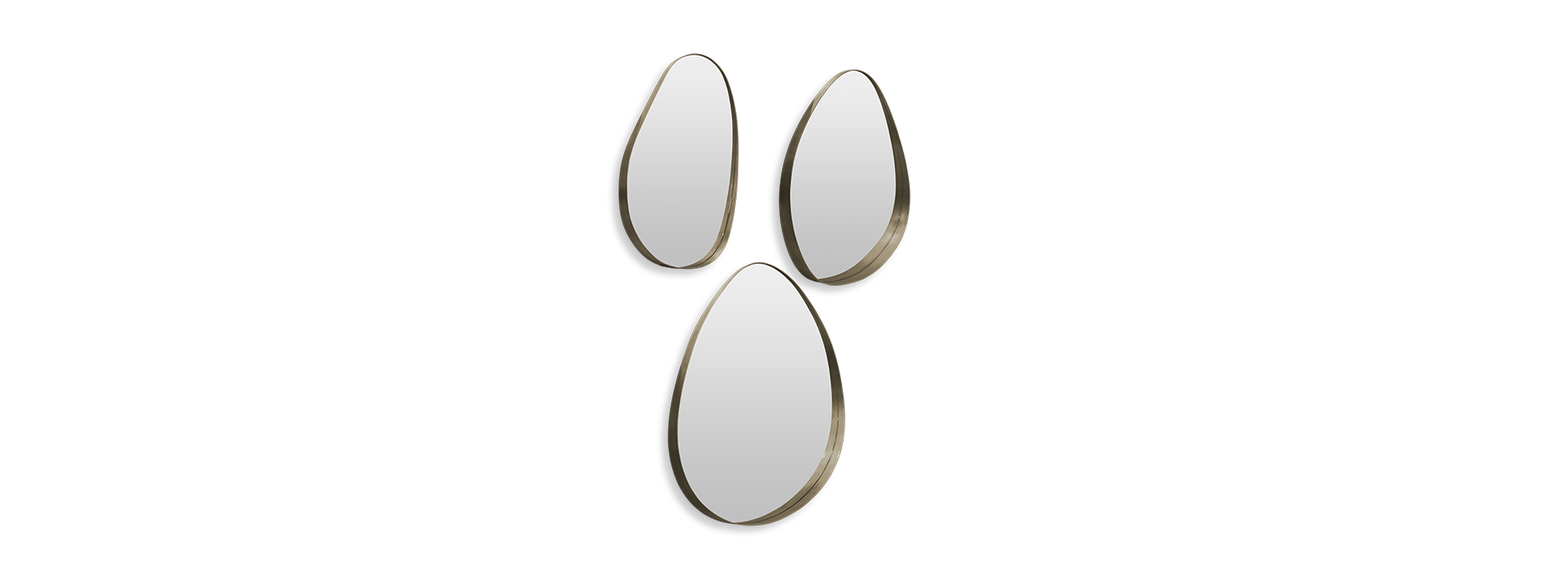 Though widely known as Coffea robusta, the plant is scientifically identified as Coffea canephora, from which the name of this three-set mirror is taken. The mirror borrows inspiration not only from the name but from the organic shapes of the coffee beans produced by this plant as well. A set composed of different sized mirrors, with forms resembling three coffee beans made with extremely high-quality handcrafted techniques, with a reflecting surface enclosed by an exquisite aged brass frame. A versatile piece, ideal for an entrance or energizing a living room aesthetic.
