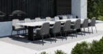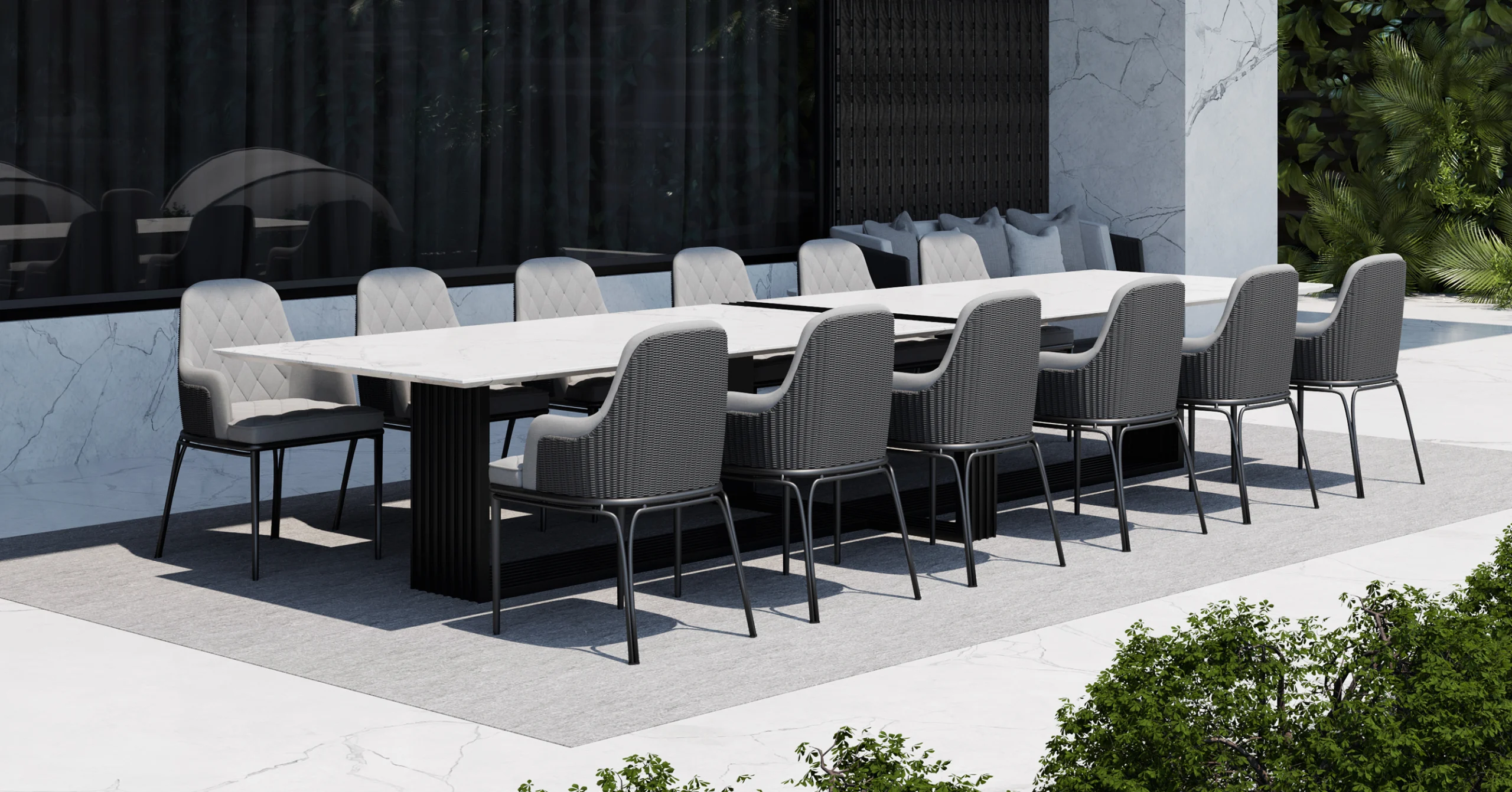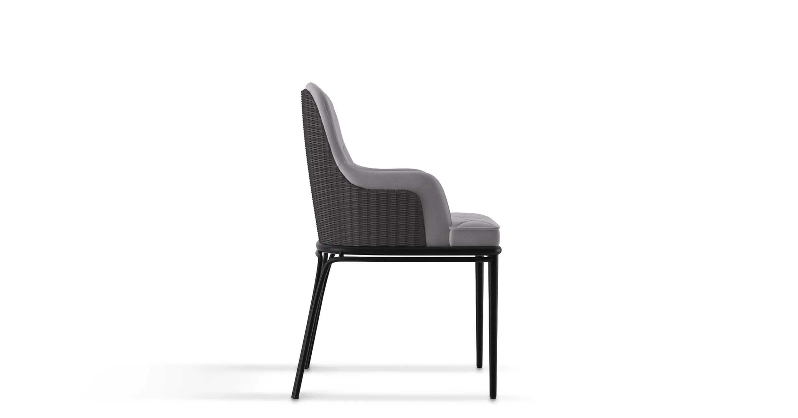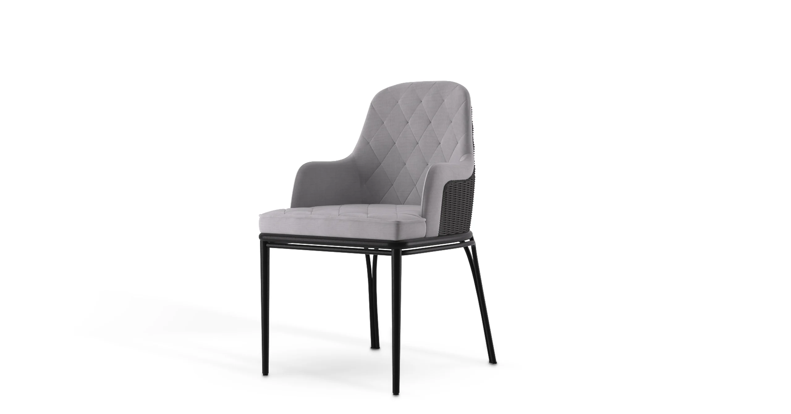 Our Outdoor Charla dining chair is a splendid object of boundless elegance. This marvelous design is the perfect example of timeless lines with a modern twist, made with a complexity of luxurious and resistant materials, such as Stainless Steal, Powder Coating and Synthetic Rope Mesh, perfect for a relaxed yet luxurious outdoor.