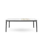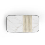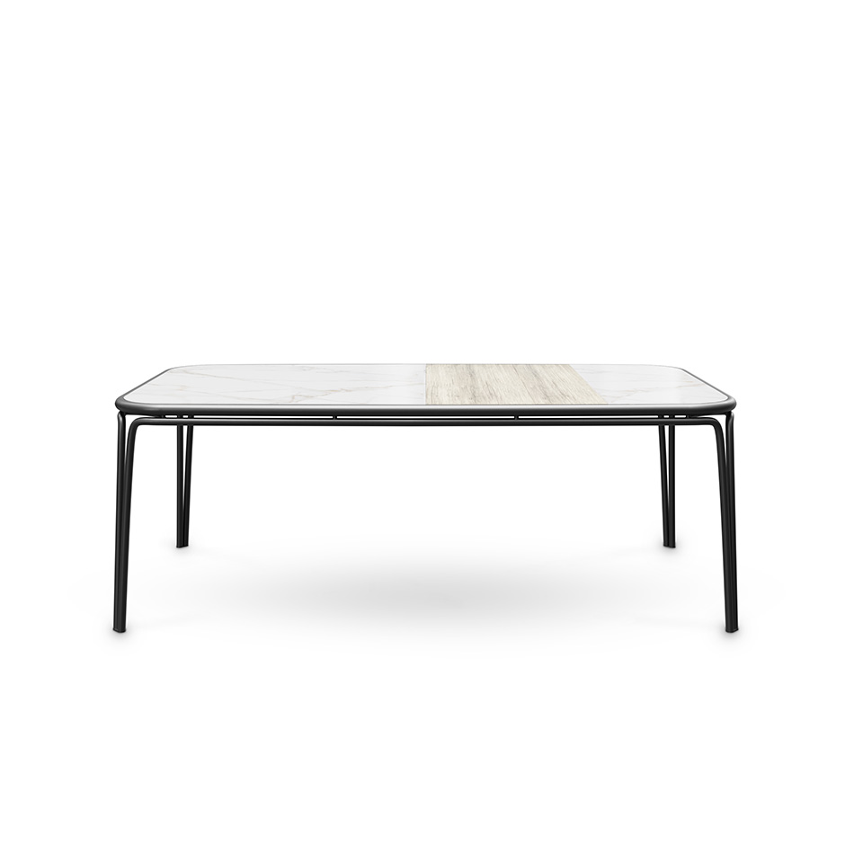 The Charla outdoor dining Table has distinctive details that make a delicate adjustment between the best hand-worked Teka wood with the warm and golden tones on its Calacatta Gold marble surface. This striking design fits in any contemporary outdoor dining space.