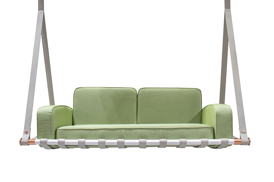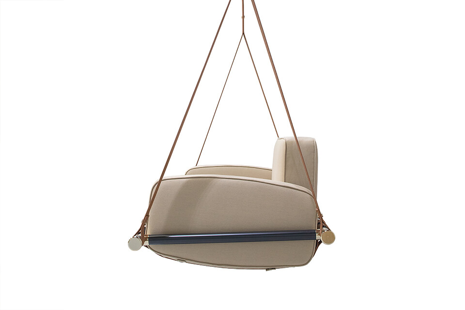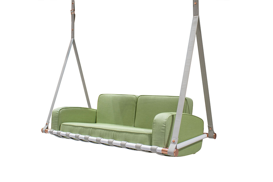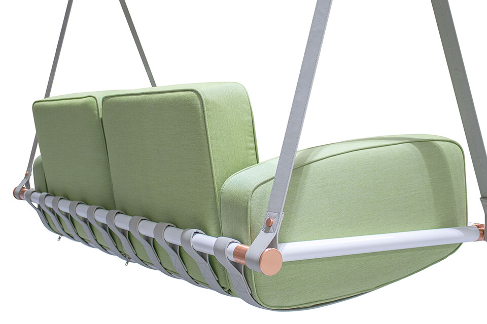 Designed to be enjoyed in good company, the Fable hanging sofa has beautiful metallic details that can be customized. The bottom seat cushion is a breathable mesh that enhaces its longelife.