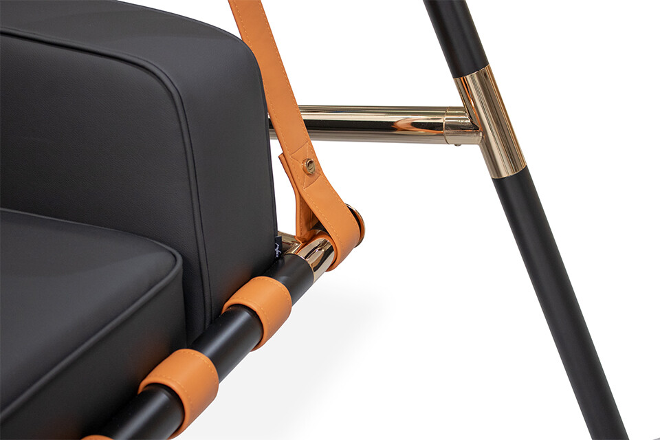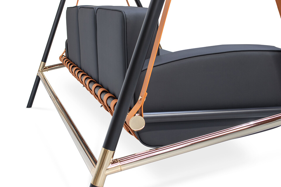 Swinging through earlier memories with the addition of one seat. This swing has lacquered stainless steel and plated details. The bottom seat cushion is a breathable mesh that enhaces its longelife.