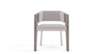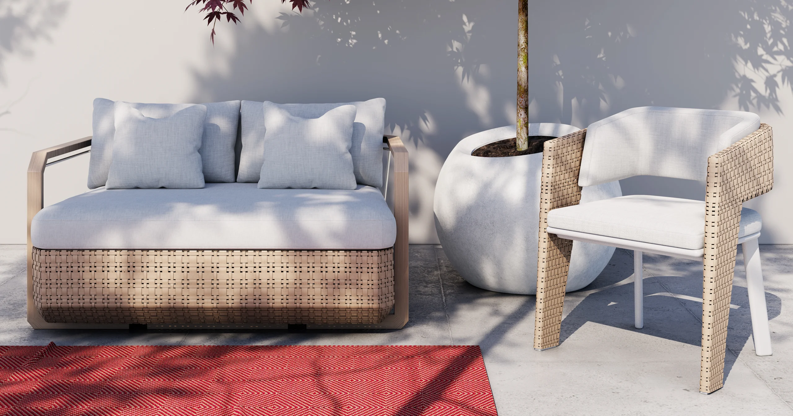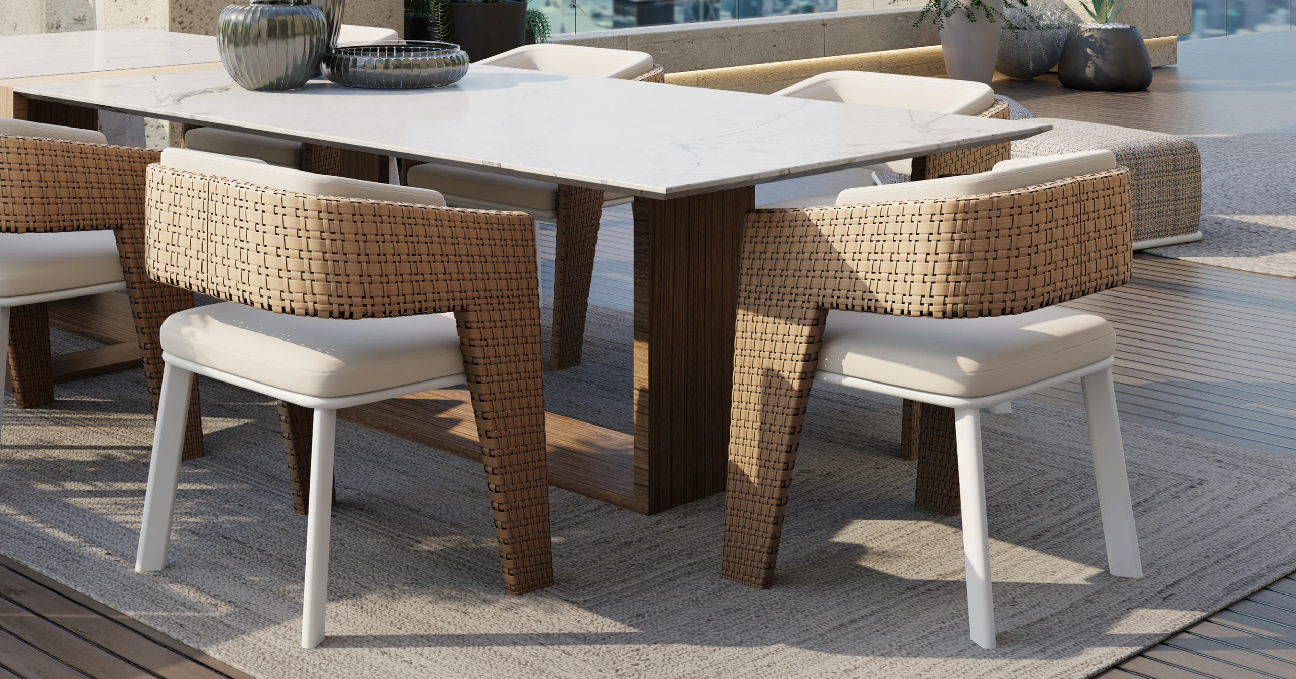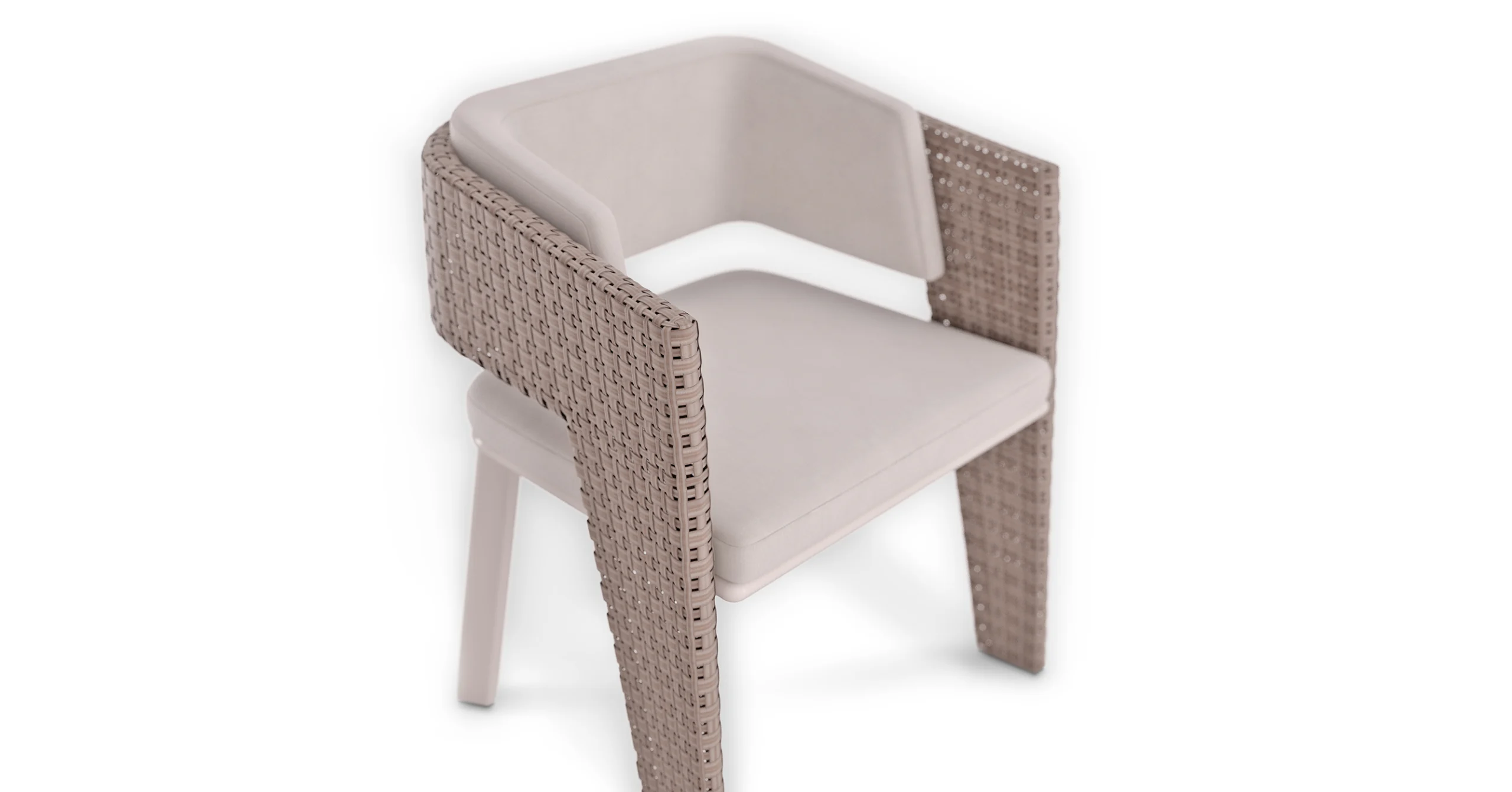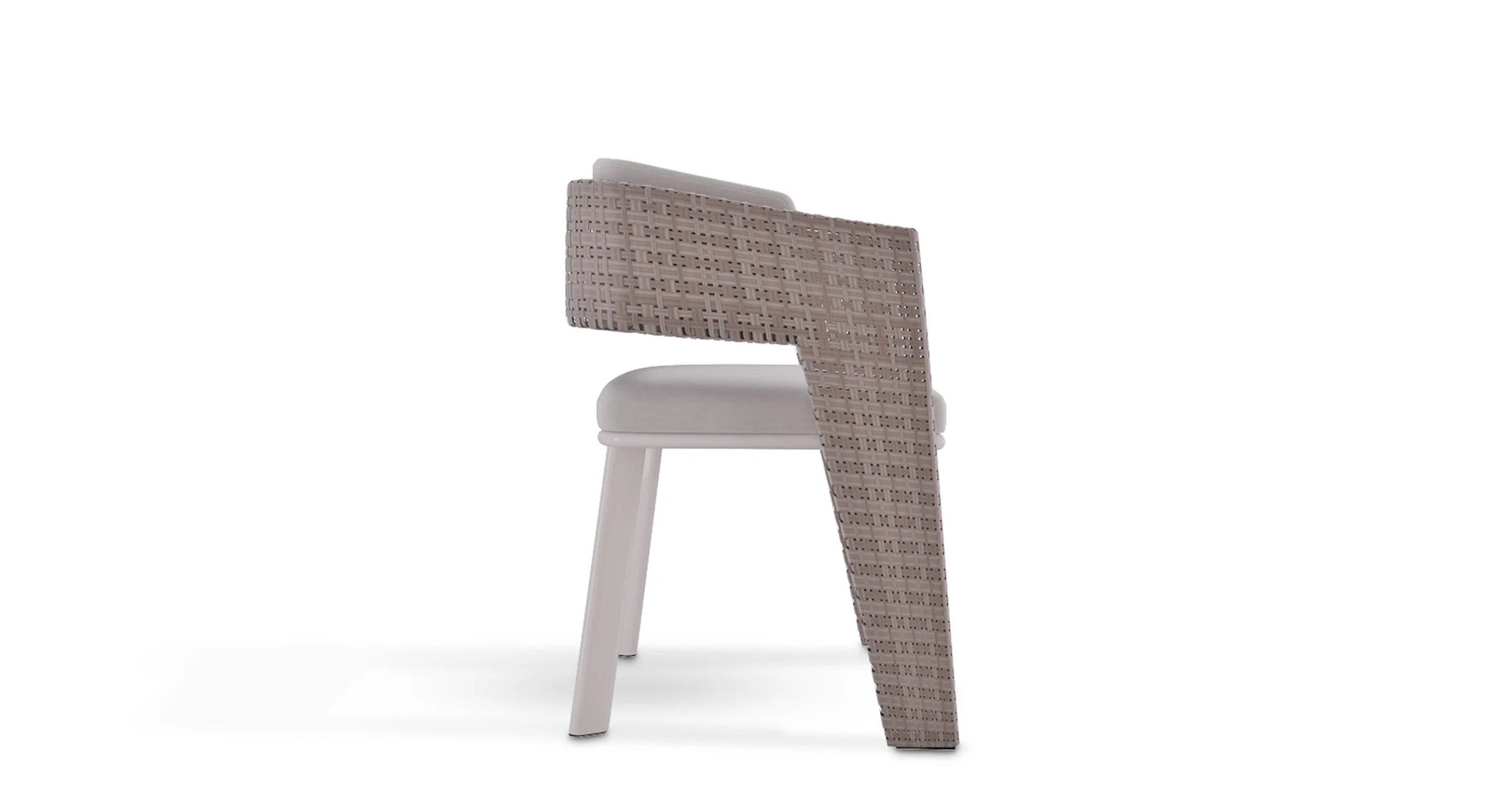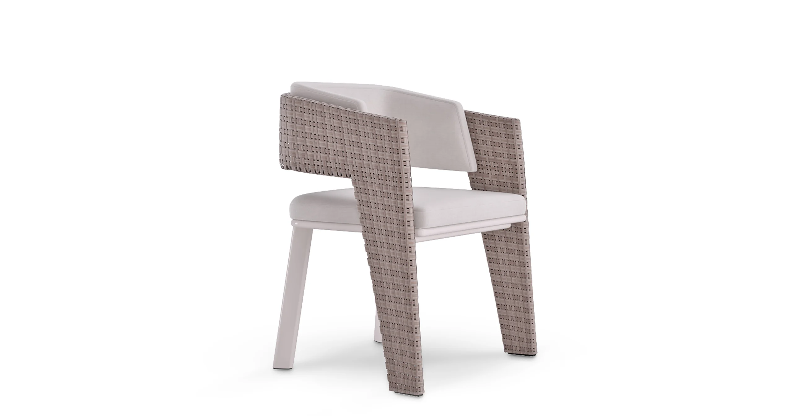 Galea is a glamorous outdoor dining chair that blends ancient with modern. It draws inspiration from an helmet worn by warriors in the Roman Empire and is brought to life through traditional weaving technics from Indonesia, combined with Portuguese exquisite Metal work for a durable and resistant outdoor piece. Made with Stainless Steel, Powder Coating & Synthetic Mesh this elegant chair with an Seashell Color is perfect for a relaxed yet luxurious outdoor.