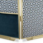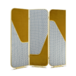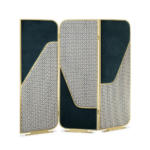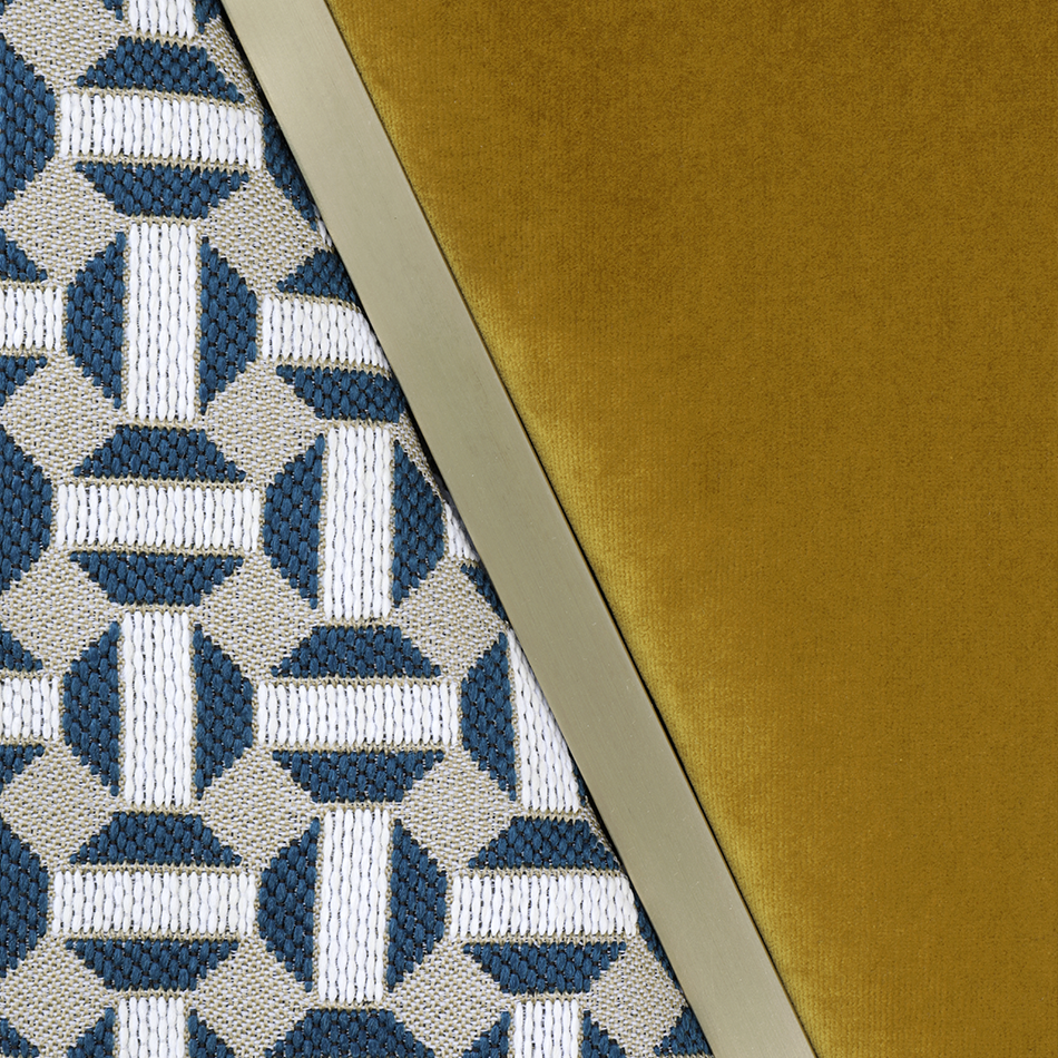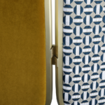 The precious crossing curved brass frame of this beautiful screen, named after Giulietta Masina, creates an elegant dialogue with the upholstery – deep yellow or peacock velvet combined with a fifties’ taste fabric. The interesting octagonal patterns rediscover the taste for decoration, a detail that is very typical of the modernist design concept.