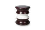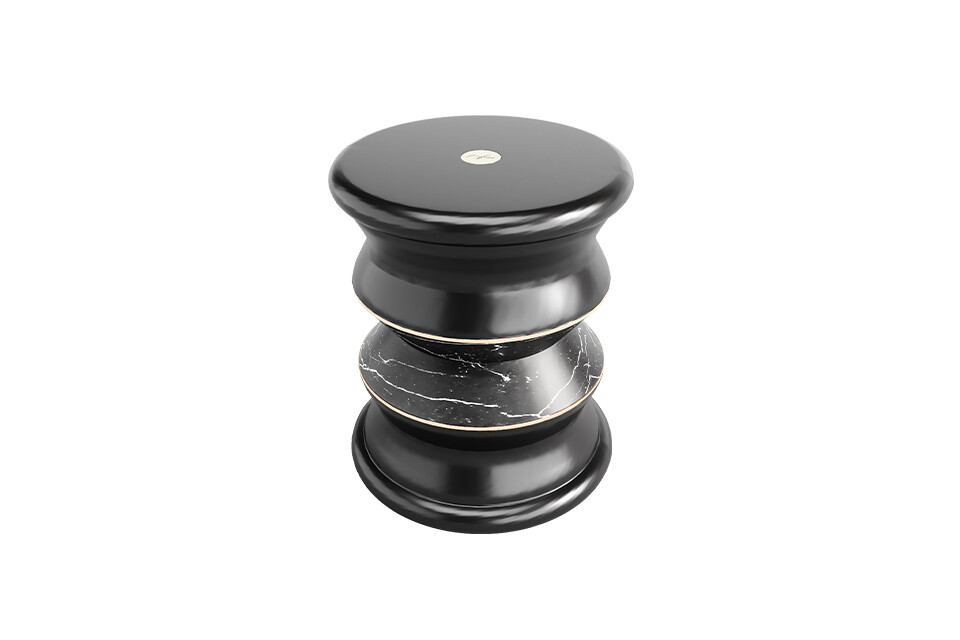 Greek architecture is known for its structures and that’s the main inspiration for Lonian. An outdoor stool that’s unique due to its shapes and materials. Featuring a fully customizable structure in fiberglass, complemented by marble and metallic details.