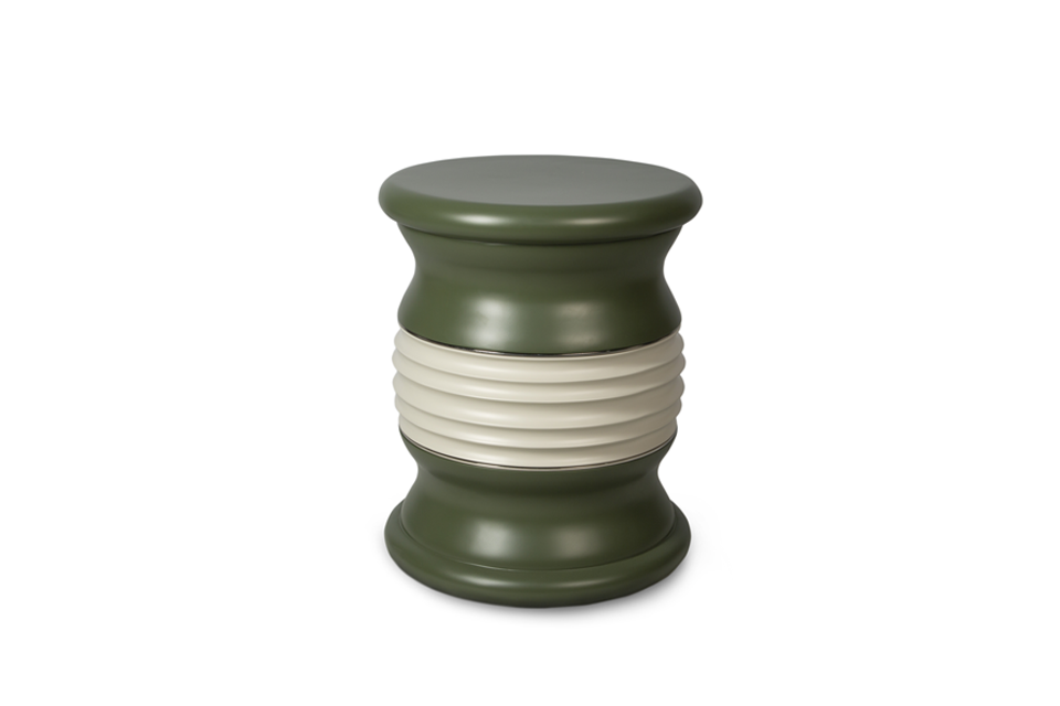Greek architecture is known for its structures and that’s the main inspiration for Lonian. An outdoor stool that’s unique due to its shapes and materials. Featuring a fully customizable structure in fiberglass, complemented by marble and metallic details.
