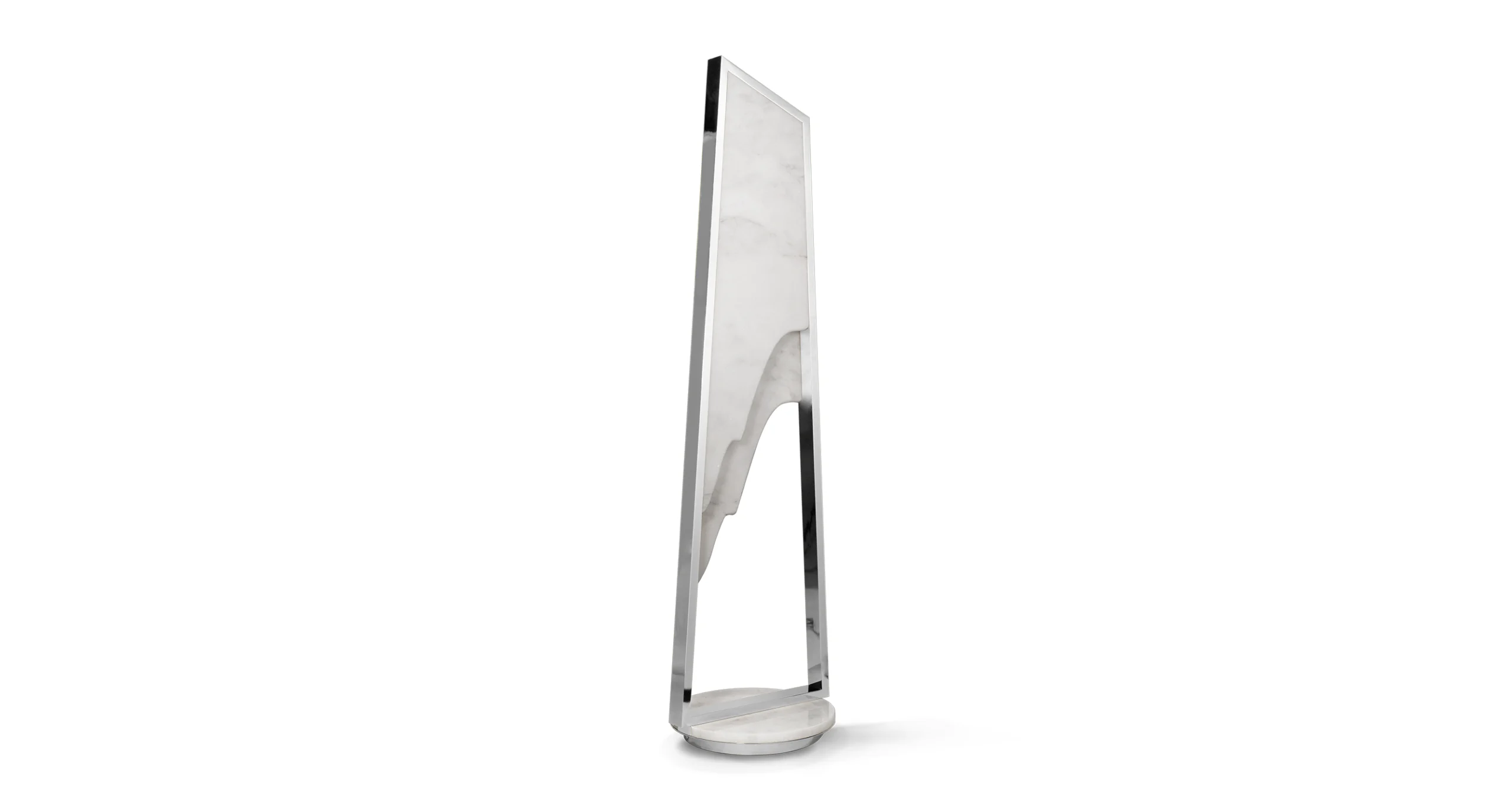 The Magna I Outdoor Floor Lamp is an object of contemplation, perfect for outdoor scenes. Magna’s design was based on the awe-inspiring beauty of mountains and skylines, hence its sculptural appeal enhanced in stainless steel and alabaster.