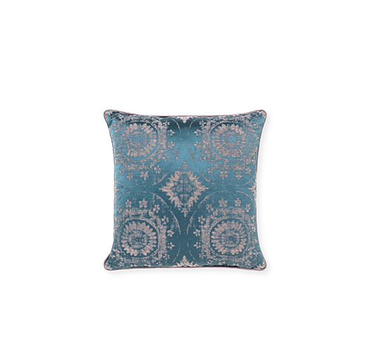 This classic blue pillow was inspired by mandalas. Mandalas are used as instruments of concentration and to achieve higher states of meditation, especially in Tibet and Japanese Buddhism. A long time ago, the mandala was used as an artistic and religious expression through rock paintings.