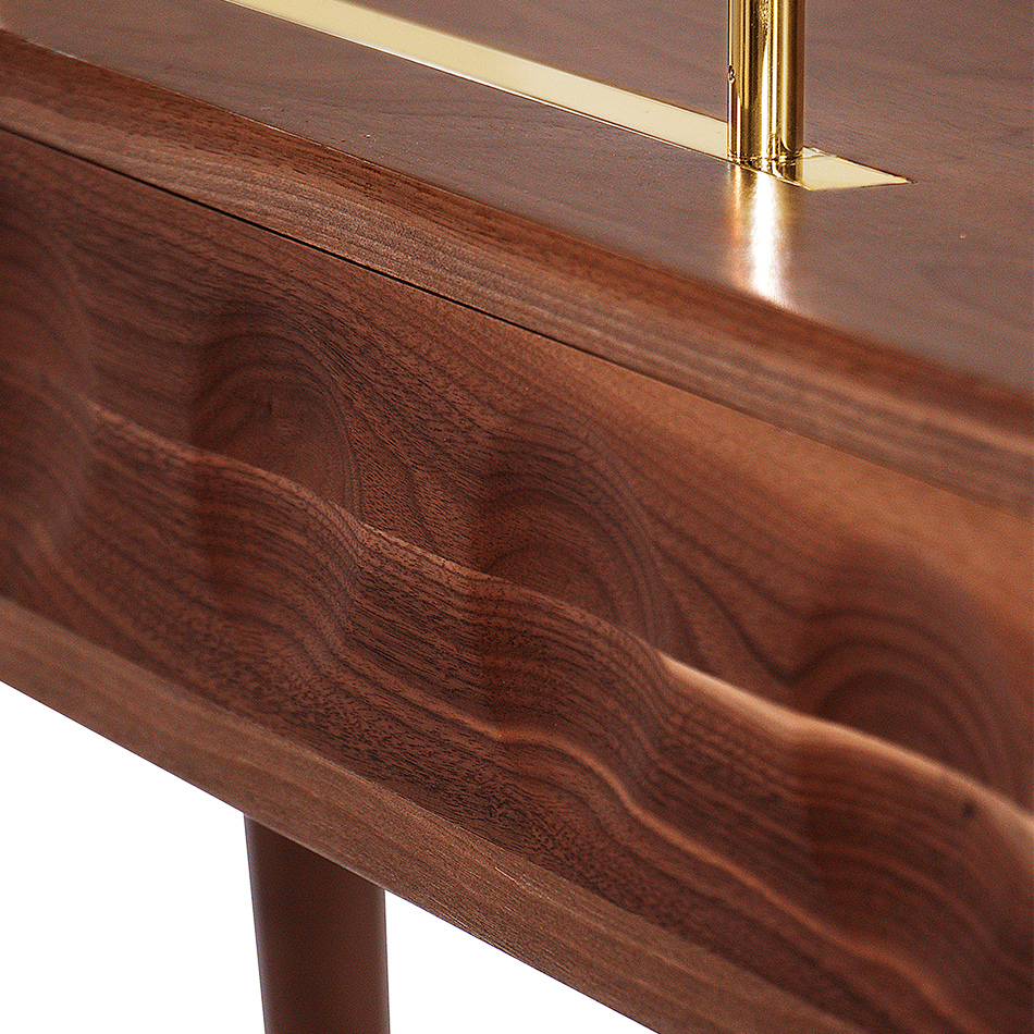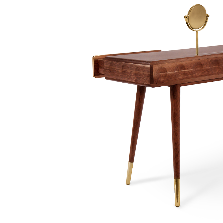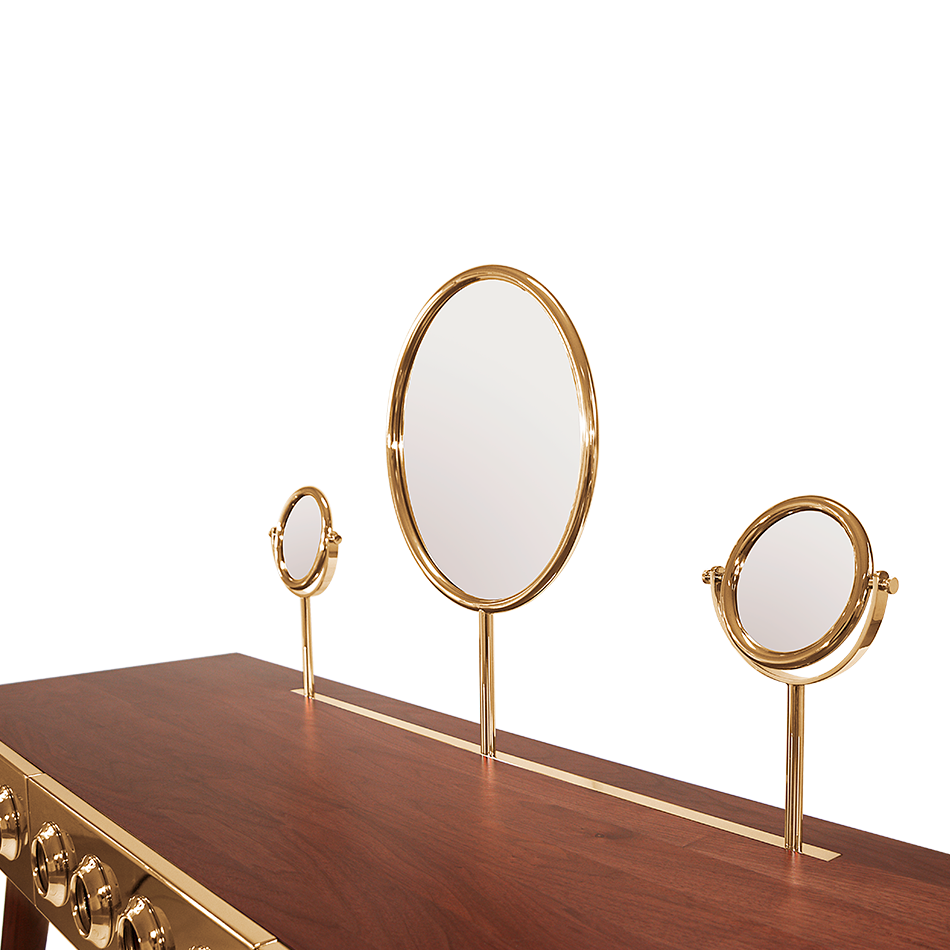 Clear Mirror , Polished Gold Plated Brass , Solid Walnut Matte |