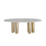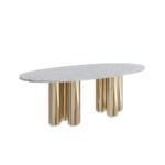 Its unique rounded shape and sleek design make it stand out, while the exquisite marble top evokes the beauty and magic of the Moon. The combination of high-quality materials, including the marble top and sturdy base, results in a durable and long-lasting piece of furniture that is sure to impress.