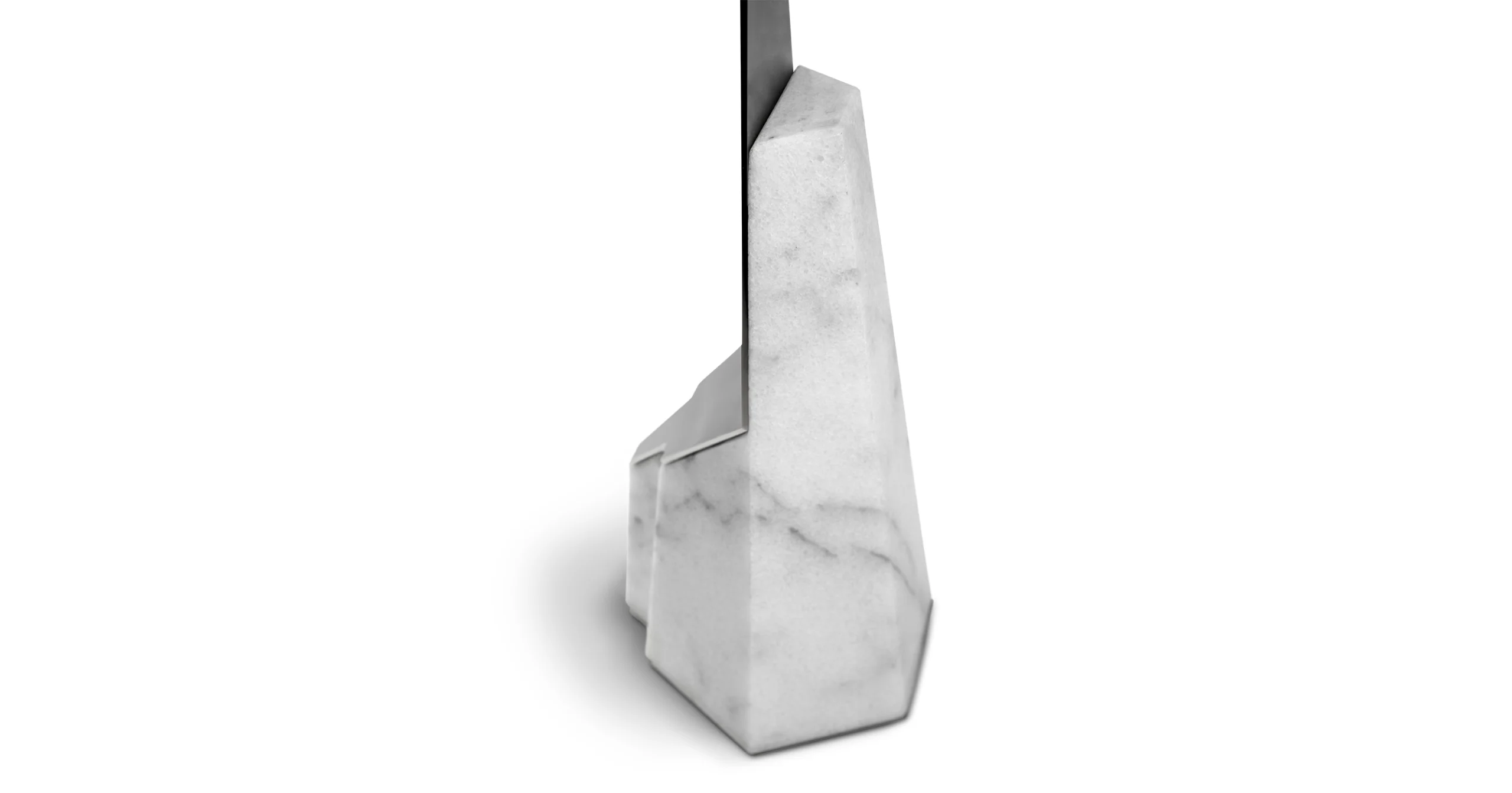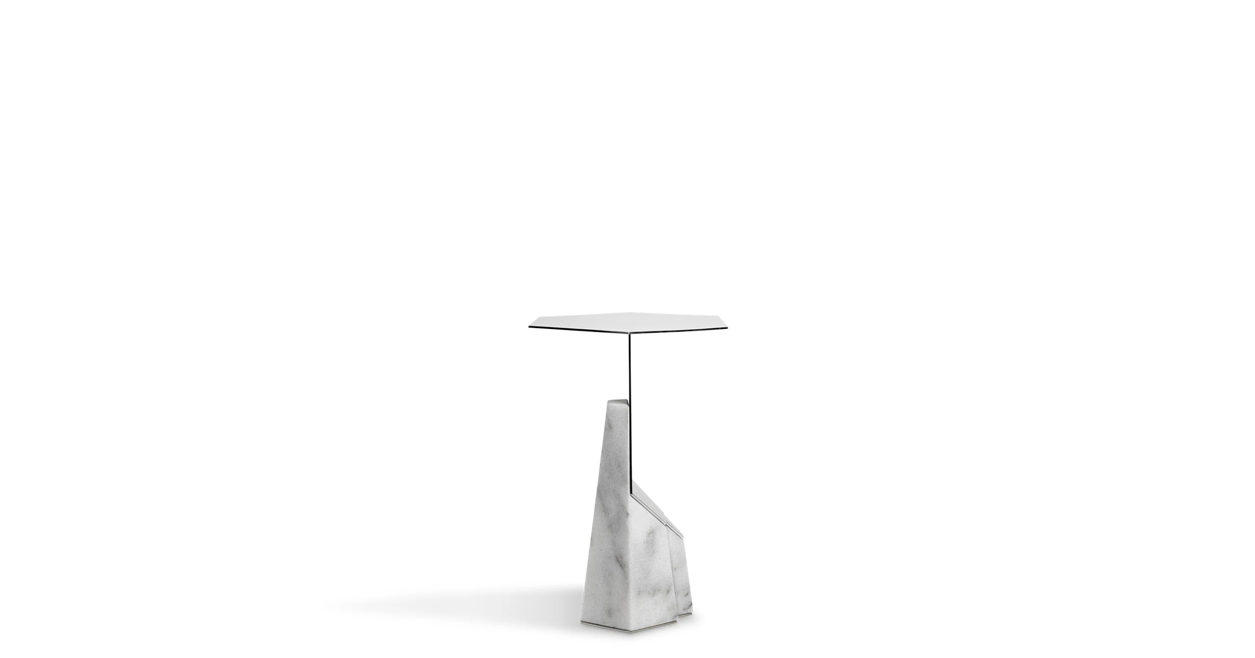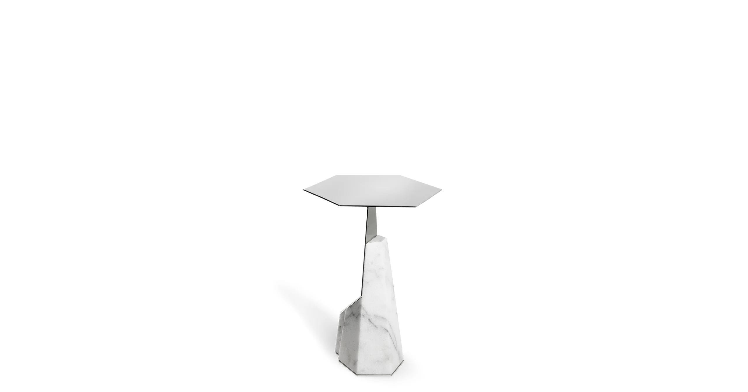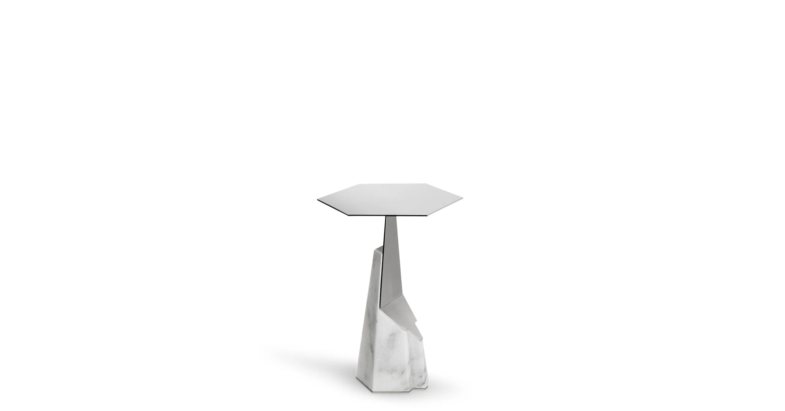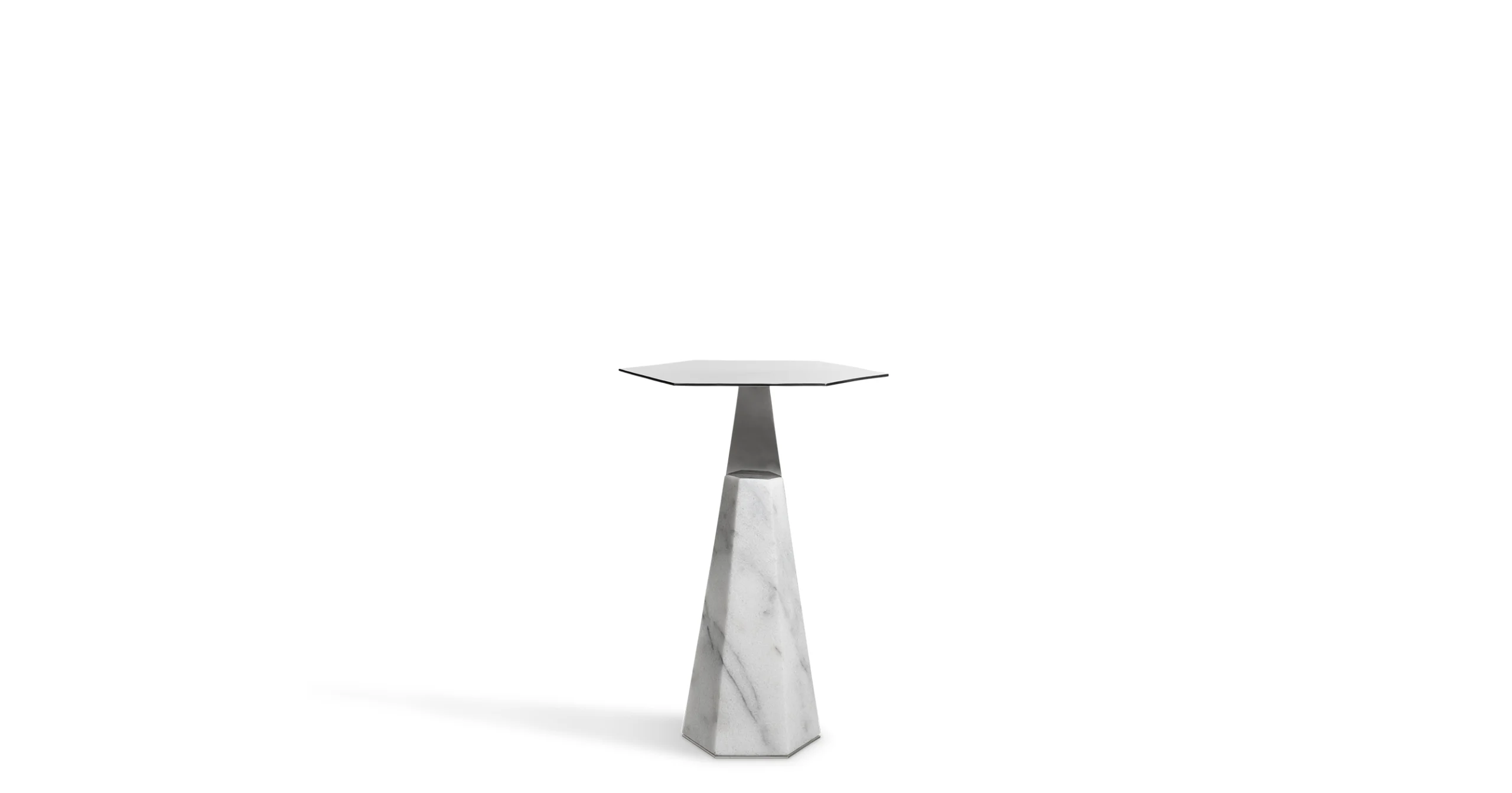 Myllo’s architectural allure is undeniable, as its design was inspired by the ambiguity of astounding structures worldwide. The Myllo Grey Side Table is made with a series of timeless materials displayed in a towering manner, including a Carrara marble base, stainless steel support, and a smoked glass top.