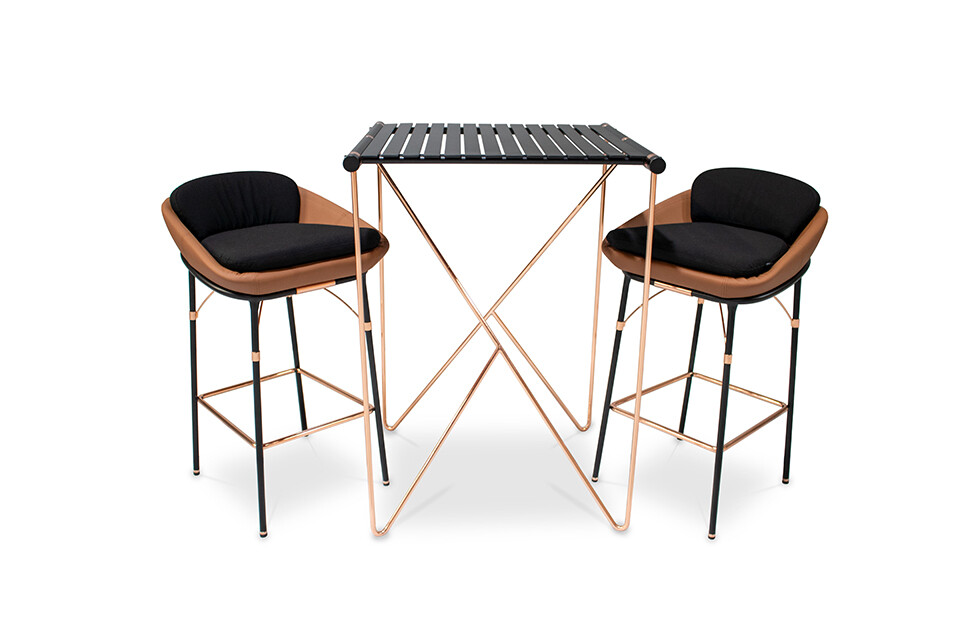 The Noa bar table comes to improve the contemporary style of the Noa collection. The elegant customizable metallic legs are the support for the beautiful lacquered aluminum top, resulting in a very functional and versatile bar table.