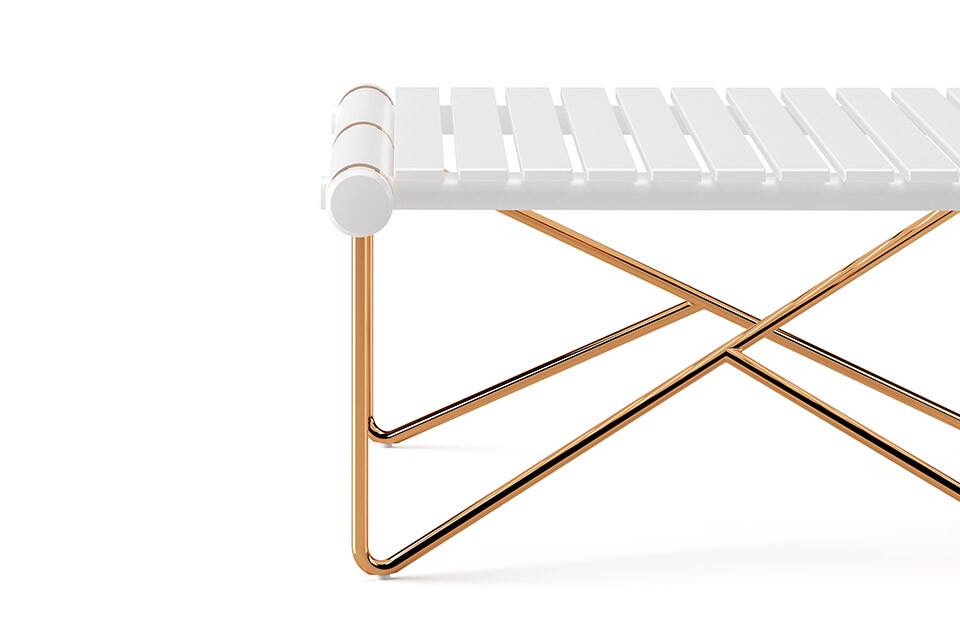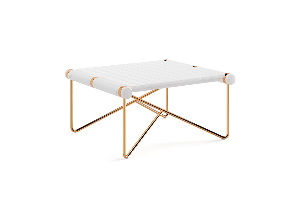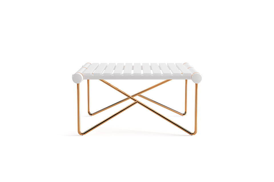 The Noa side table small is a harmonious combination between functionality and a sophisticated design. The elegant copper legs are the support for the beautiful white lacquered aluminum top, resulting in a very functional yet elegant outdoor set.