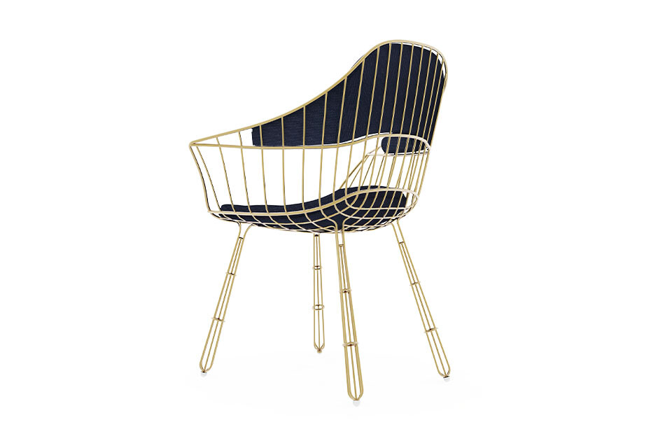 Attractive metallic details and extremely comfortable upholstery bring the Nodo dining armchair all the comfort and functionality needed in a dining set. This outdoor dining armchair has removable and washable fabrics.