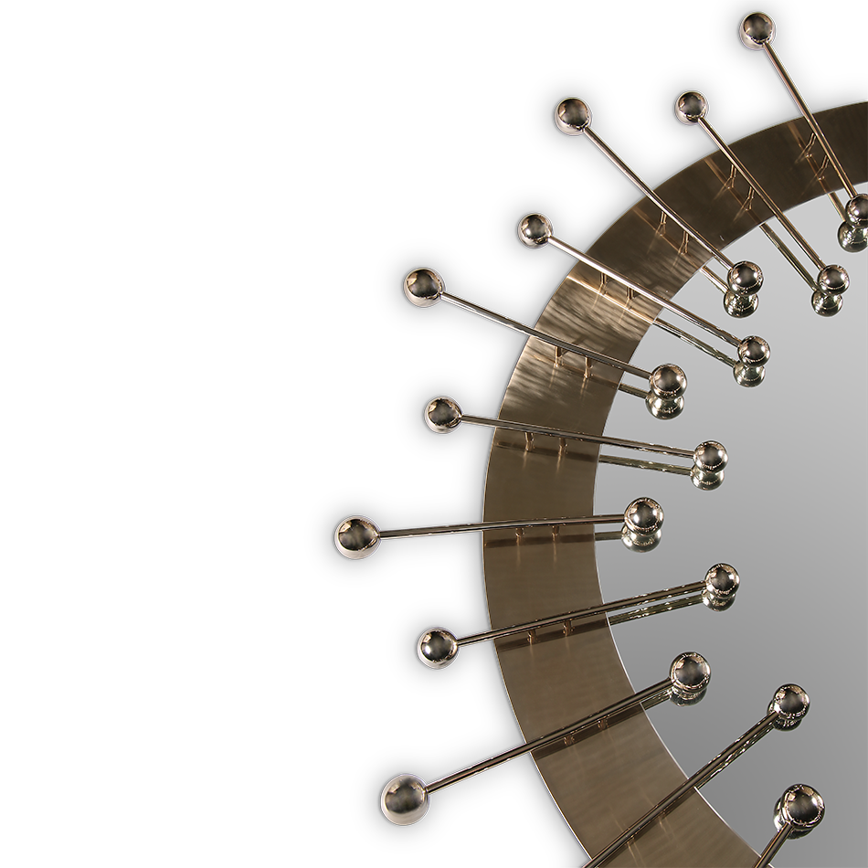 A contemporary descendant of mid-century modern style, the Quantum circular wall mirror is not just a spot-on reflection of the atomic age design – it’s a leap forward. A set of gold-plated spheres arranged in a circular pattern create a stunning visual effect.