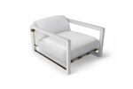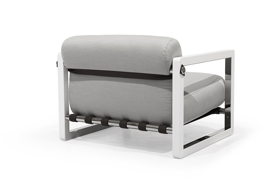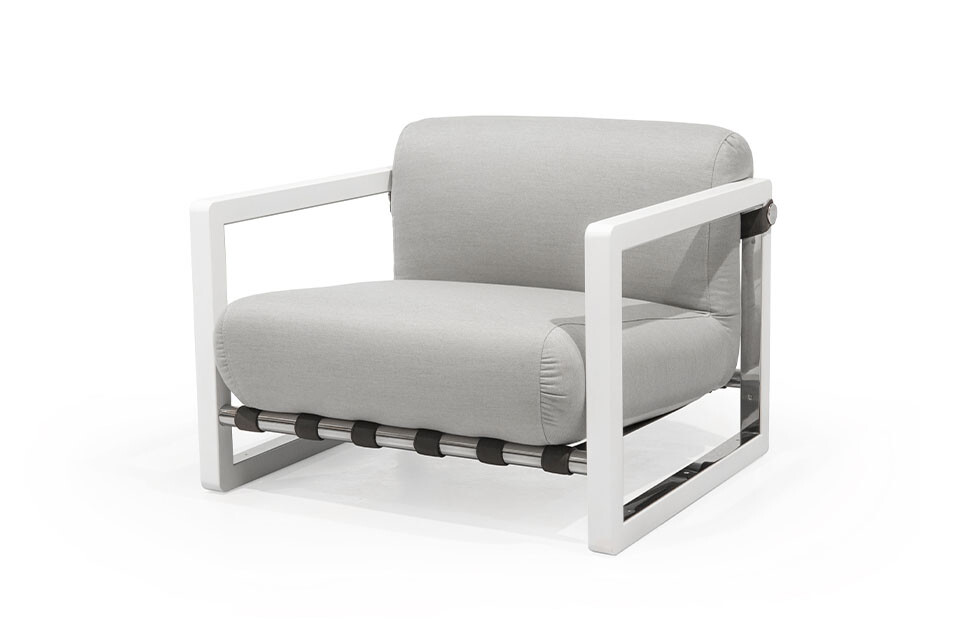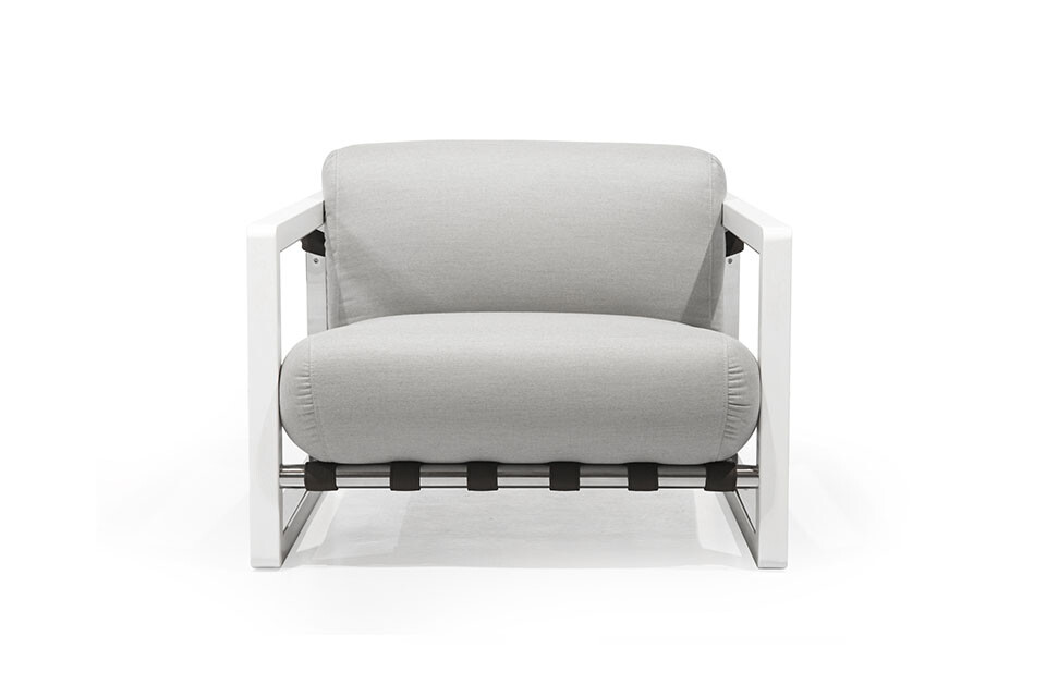 The only way to fully enjoy a sunset view from a rooftop is by feeling like you are part of it. Saccu armchair assures you of that sensation. Due to its minimalist design and customizable upholstery, this outdoor armchair is the ultimate concept of comfort.