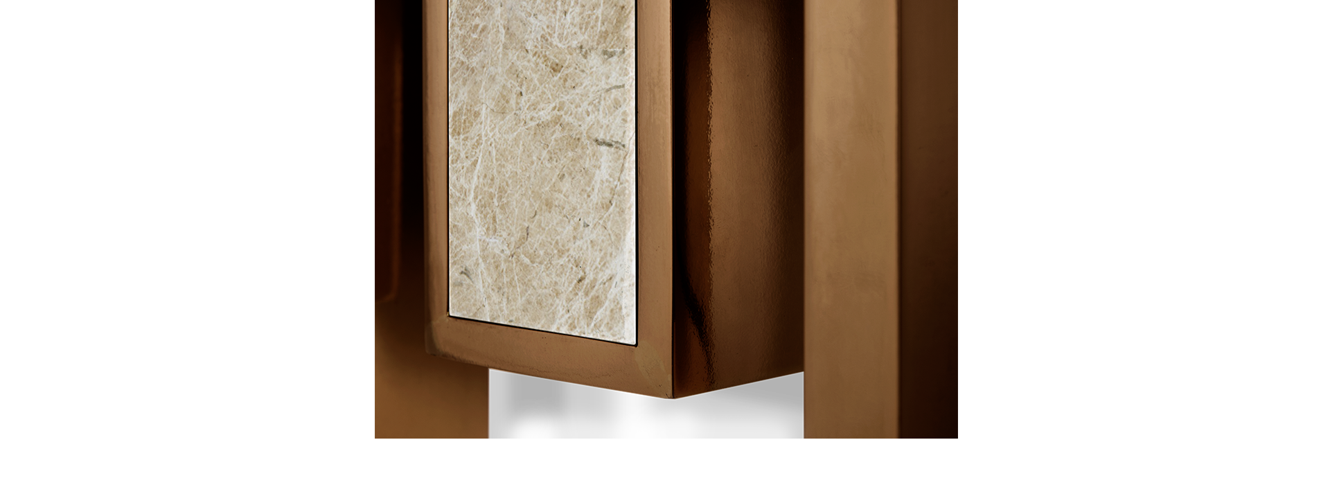 Brass with Bronze Epoxy Glossy , Bronze Mirror , Light Emperador Marble |
