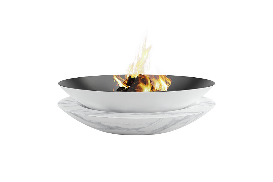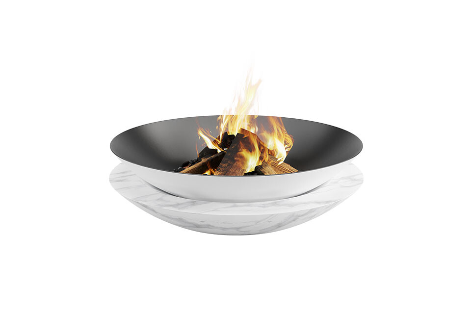 Sphere highlights the harmony between its curvy lines and its round shape. A customizable fire pit with a marble base and a carbon steel and refractory steel plate, that will allow you to live intensely through your outdoor moments.
