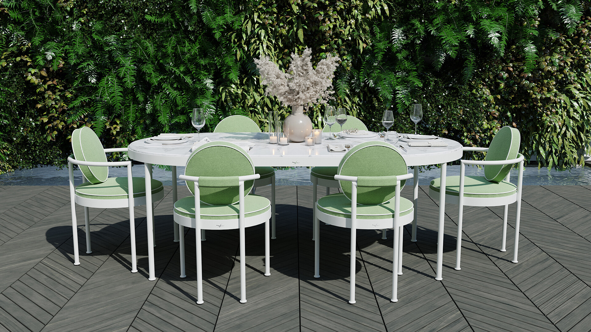A well-structured space needs a central piece that can add life and be functional at the same time. The center table big from Trace Collection can be functional and add life and sophistication due to the thin legs and marble top.