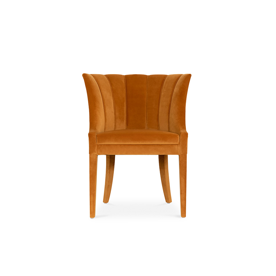 Begonia is a beautiful flower from tropical countries. Inspired by its warm energies and the bold shape of its petals, our designers conceived BEGONIA Velvet Upholstered Dining Chair. Its charming curves and soft cotton velvet upholstery make this the perfect curved back dining chair, an elegant choice for any modern interior design.