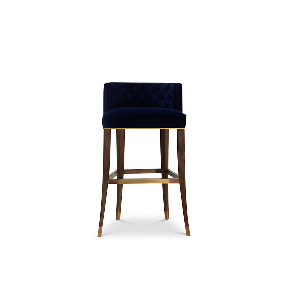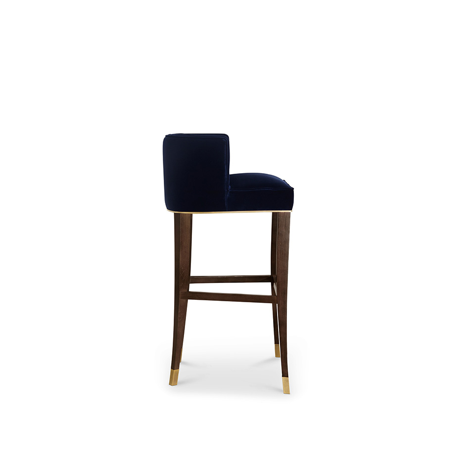 With origins in France, the House of Bourbon was a dynasty known for its class and splendour. BOURBON Bar Chair embodies this grandeur through its button-tufted inner back, rich cotton velvet and legs in ash with walnut stain matte varnish. This tall bar stool with velvet back is perfect for any modern home bar or hotel bar.
