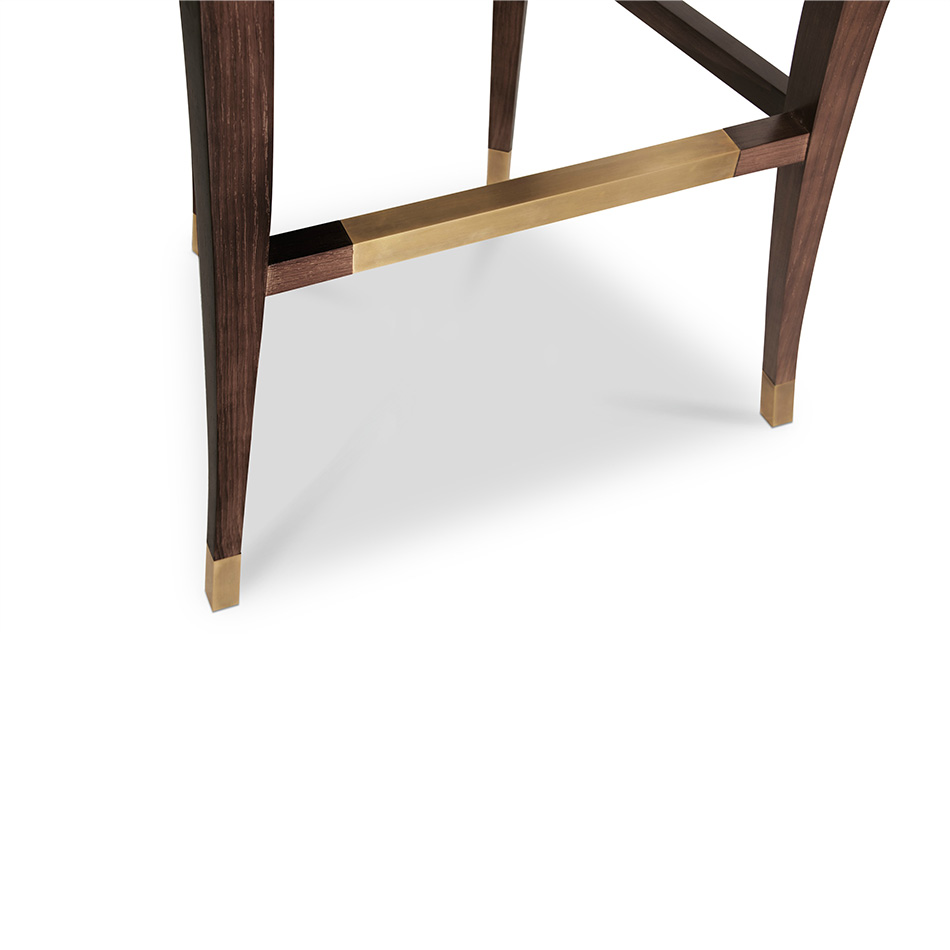Velvet , Aged Brass Details , Ash with Walnut Stain Matte Varnish |