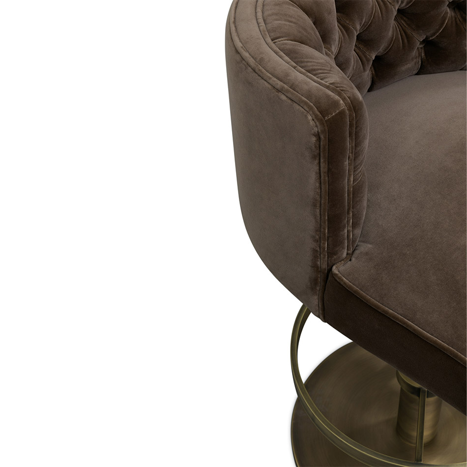 With origins in France, the House of Bourbon was a dynasty known for its class and luxury. BOURBON Swivel Counter Stool embodies this opulence through its button-tufted inner back, rich cotton velvet and legs in ash with walnut stain matte varnish. This velvet swivel counter chair with a back makes up any refined ambience.