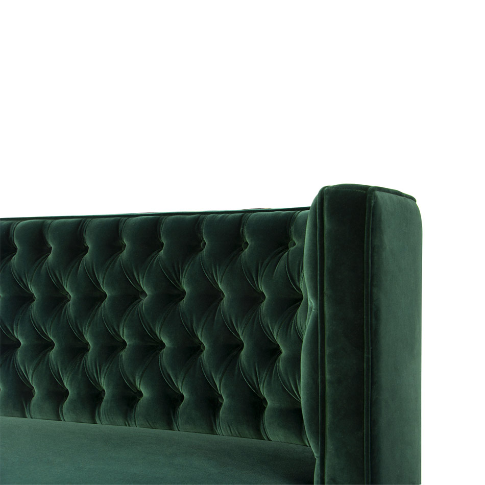 With origins in France, the House of Bourbon was a dynasty known for its class and splendour. BOURBON Sofa embodies this grandeur through its button-tufted inner back, rich cotton velvet and a base in matte aged brass. This velvet sofa makes up any refined ambience.