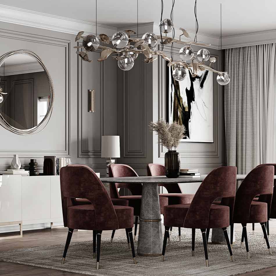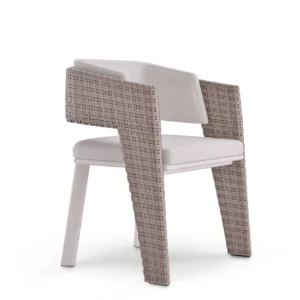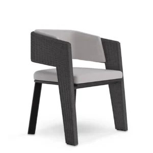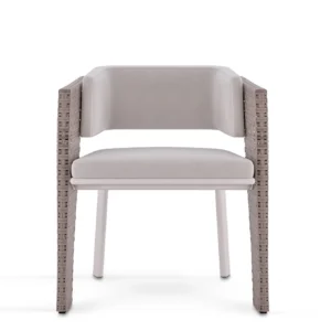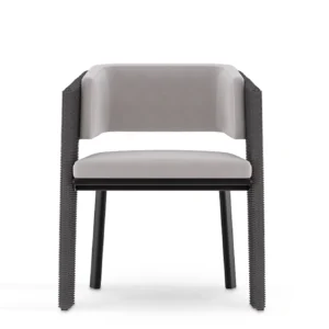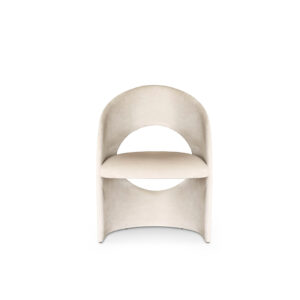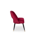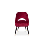 Designed with a classic retro chic feel, comfortable and perfect to pair with a any type of dining table. Finely upholstered, welted stitches on the seat, and a stylish degree reclining on the crescent open back. It features a perfectly curved back, supported by elegant tapered legs with rich accents of metallic details.