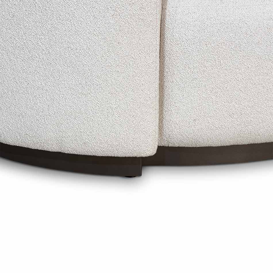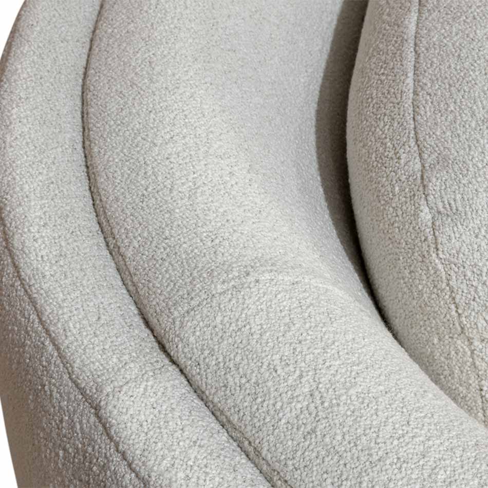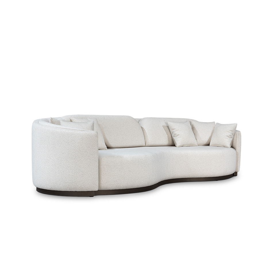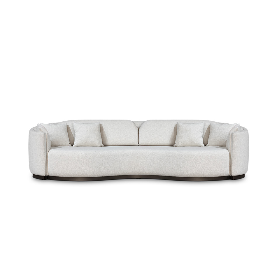 With a fluidity resembling the organic shapes of the finest whipped cream over a hot and delicious latte, the Crème Sofa has a distinctive wavy and continuous design. Upholstered with a cozy bouclé fabric, its two arms warmly embrace its seating, creating a visual delicacy with some inox bronze details. This sublime piece of upholstery is not only aesthetically pleasing to the eye but also a comfortable and indispensable item to a modern living room.
