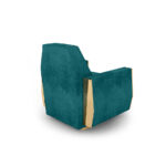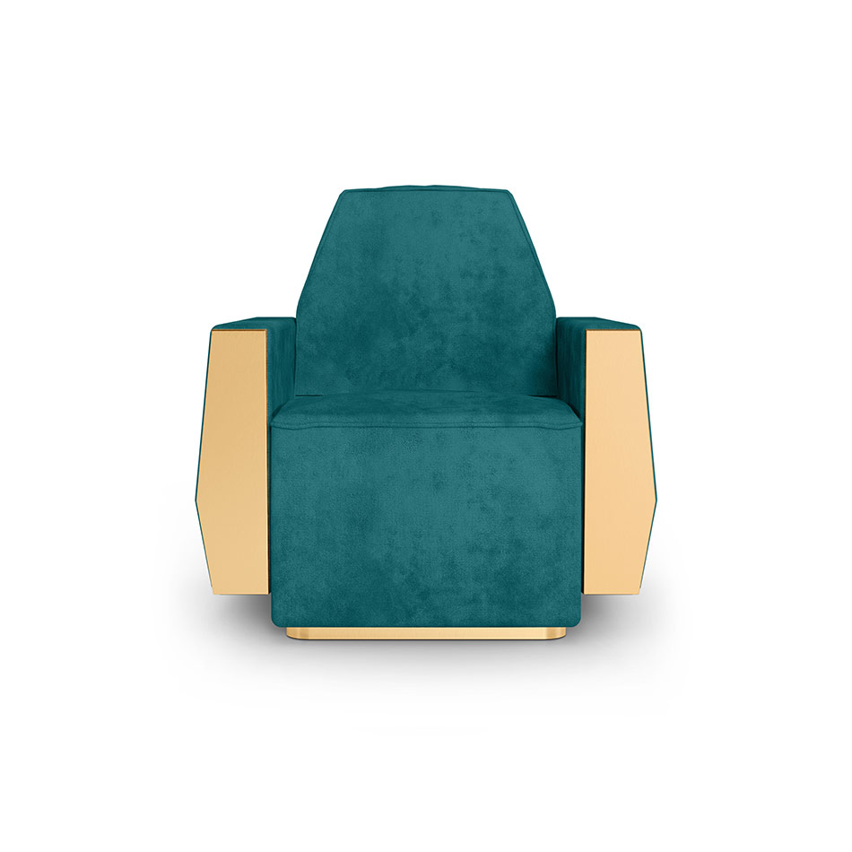 Doris Armchair exudes an elegant sophistication for your home, giving it a sense of retro cool style. This stylish accent chair features a solid rectangular frame with two massive metal plates on its armrests, contrasting with the draped fabric along its body.