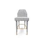 A deluxe look for a chic bar or lounge area, perfect for a mid-century modern home. Doris Bar Chair looks like an upholstered accent chair on a tall frame. With simple lines matching perfectly with other pieces in the space, it features a rectangular shape on the back and a four-tapered leg frame, accented by polished brass ferrules on the bottom.
