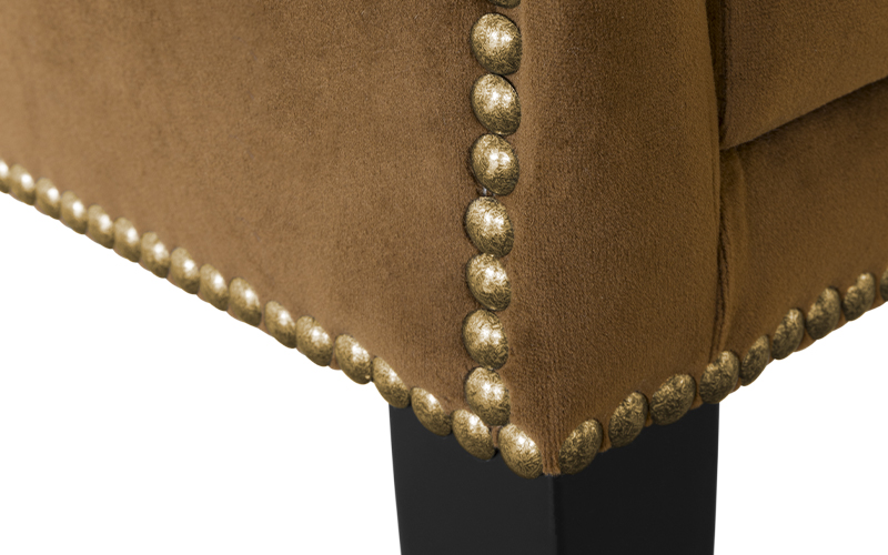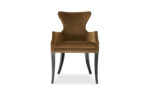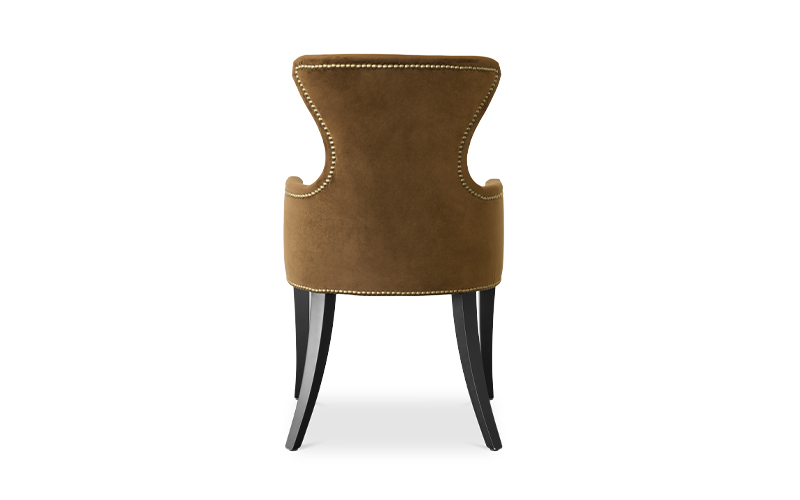 As one of Indonesia’s most active volcanoes, Dukono embodies an unpredictable strength. With a renaissance bronze nailhead trim that adds a glamorous touch to the back of this velvet upholstered dining chair and black matte lacquer legs, the Dukono Dining Chair will be the perfect addition to your modern dining room. Its charming design will make each meal an unforgettable experience.