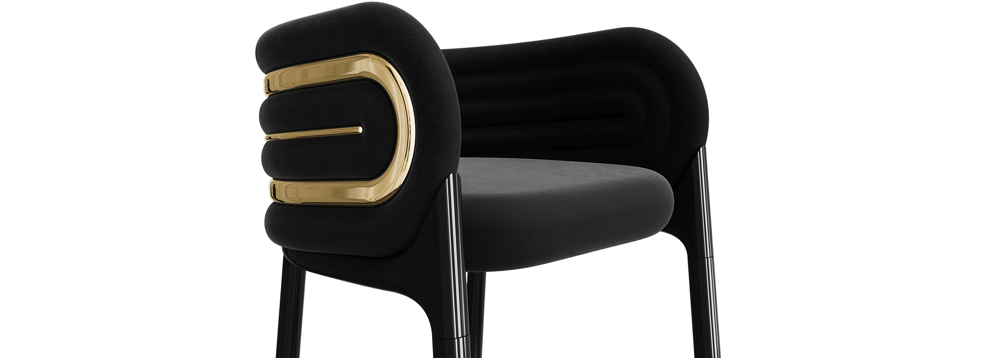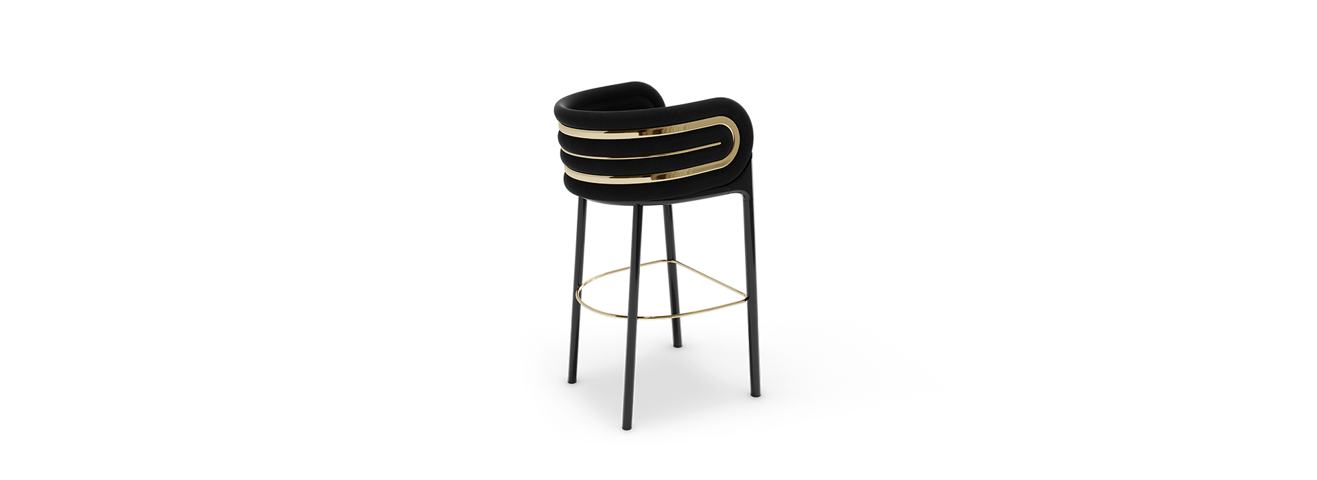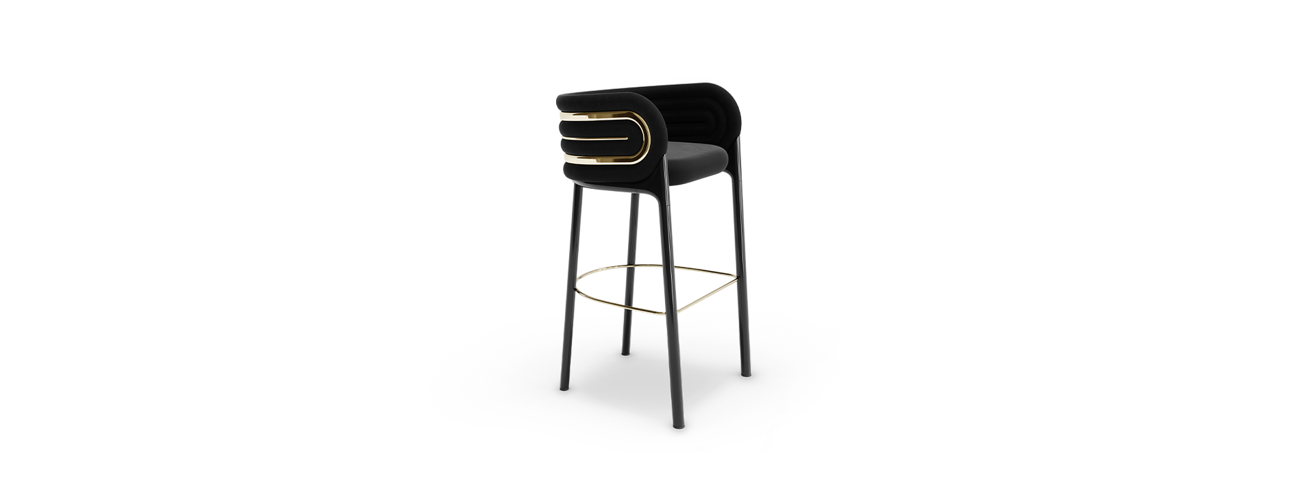 If you are looking for a modern bar chair that radiates true art-deco elegance, Dunaway Bar Chair is most definitely the one. Luxurious and extremely elegant, this modern bar chair features black velvet, polished brass details and footrest, and black lacquered legs with a gloss finish.