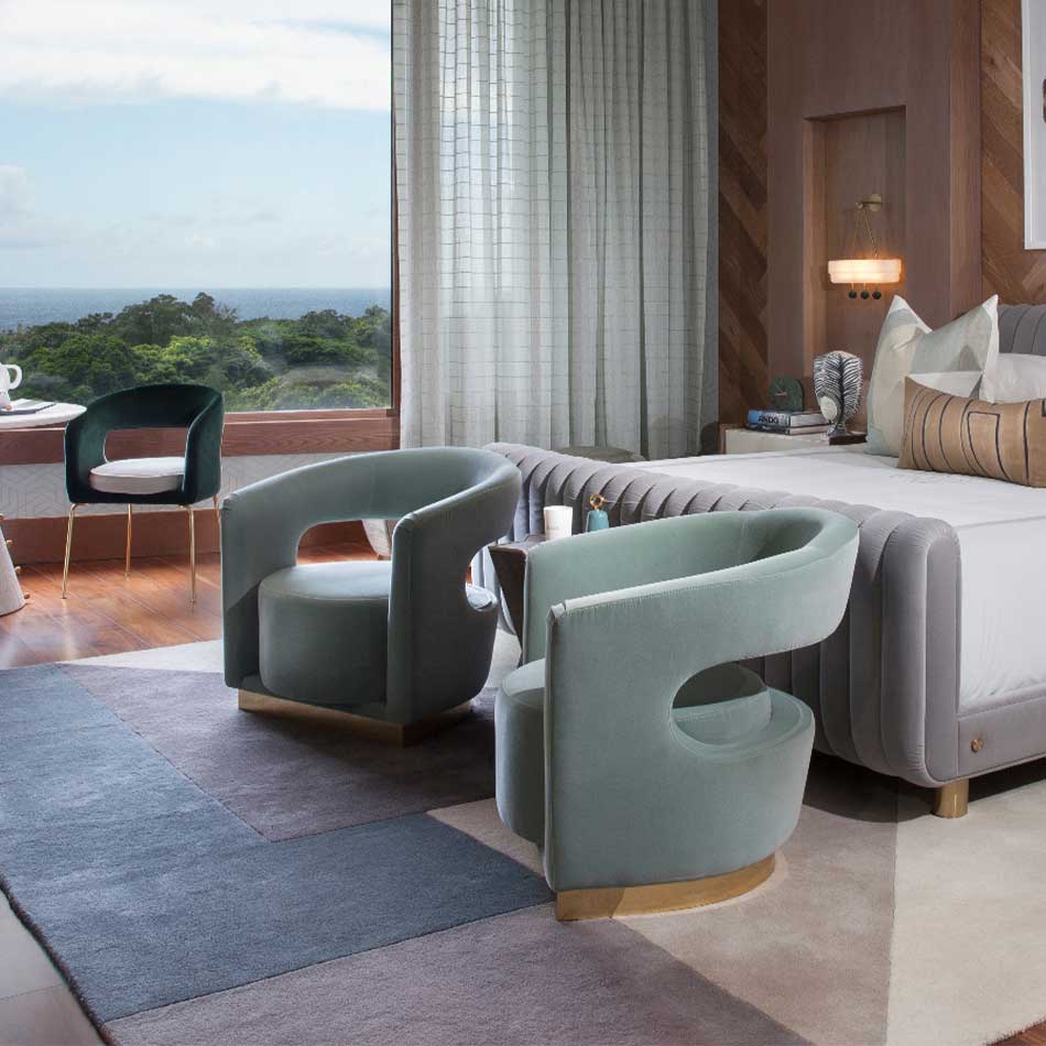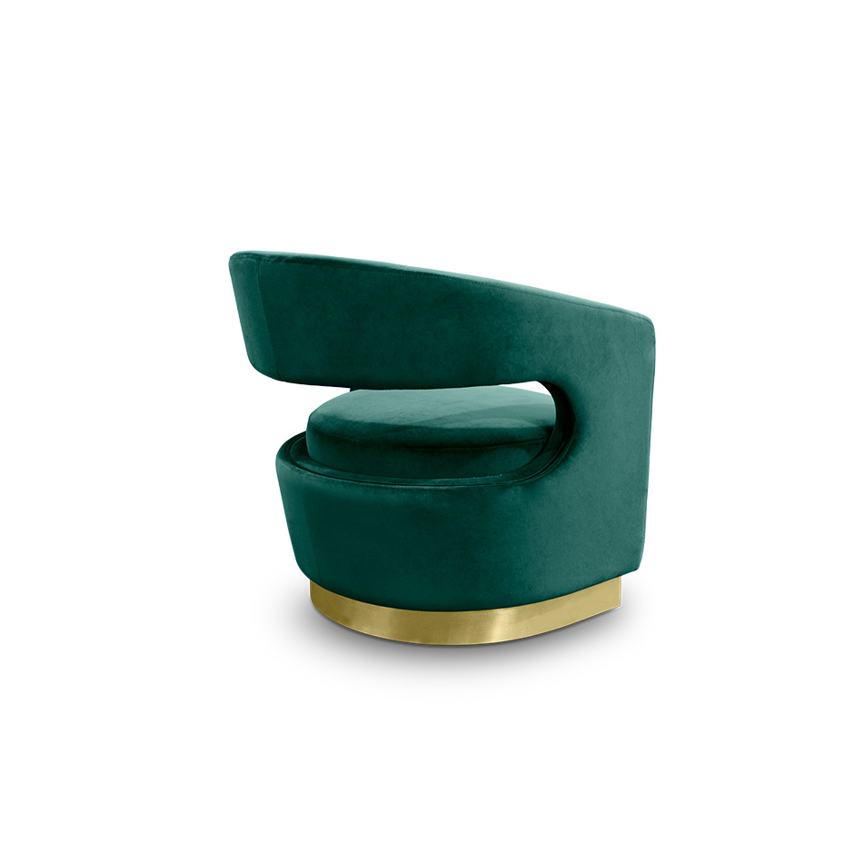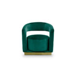 Ellen is a sophisticated armchair featuring a modern tub design mixing contemporary and mid-century styles. Built on top of a metal base, this accent chair is upholstered with luxurious fabric, a round open back and cylindrical seat, perfect for those nostalgic retro lovers that can’t miss out on the vintage details.