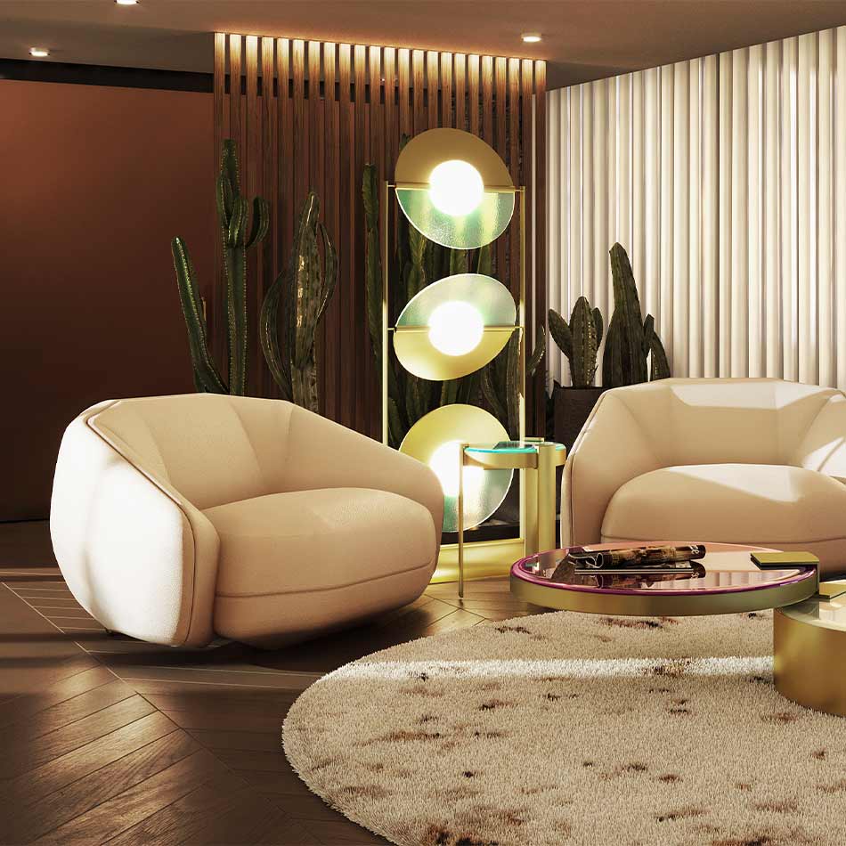Embrace the late 70s essence with Elo armchair. An explosive mix of glamour and vibrance. Inspired by Electric Light Orchestra’s melodies, this high-end piece promises to shine in any interior project. Its large, comfortable design with geometrical shapes adds allure to hospitality, commercial, and residential spaces.