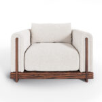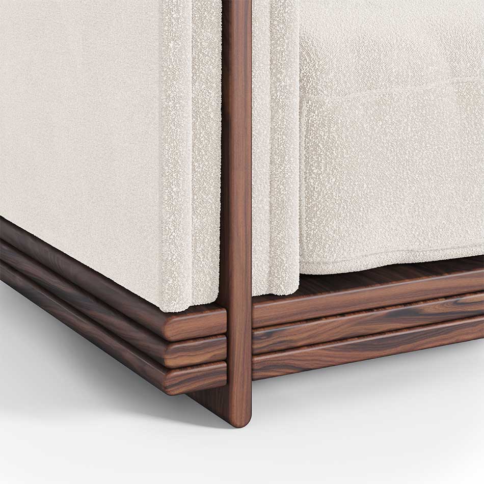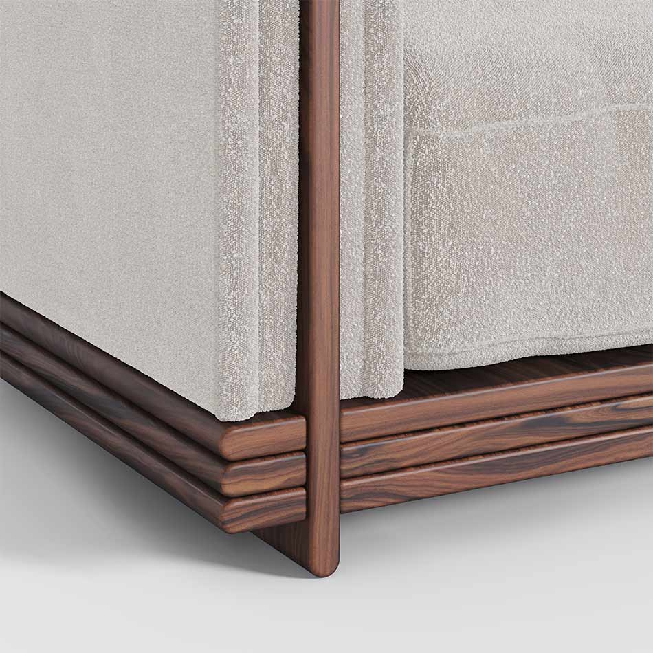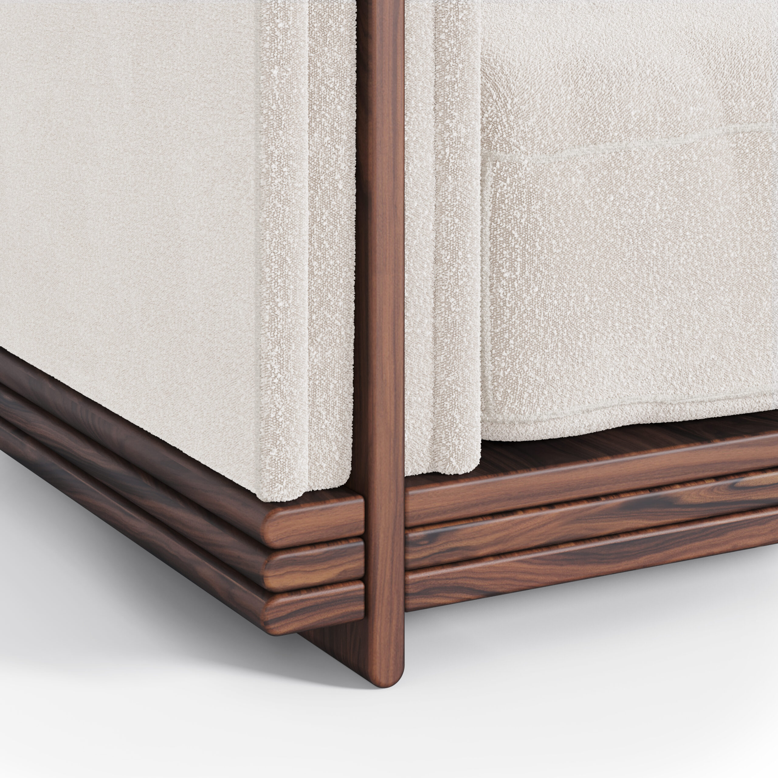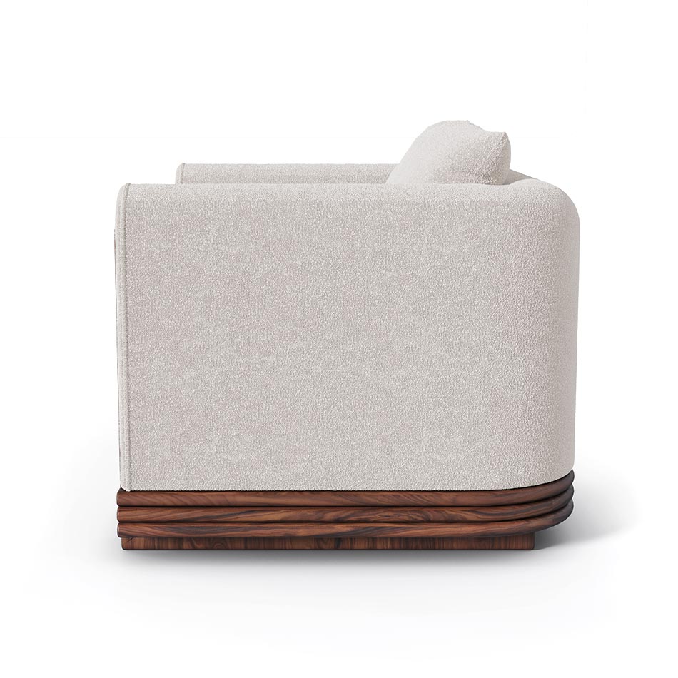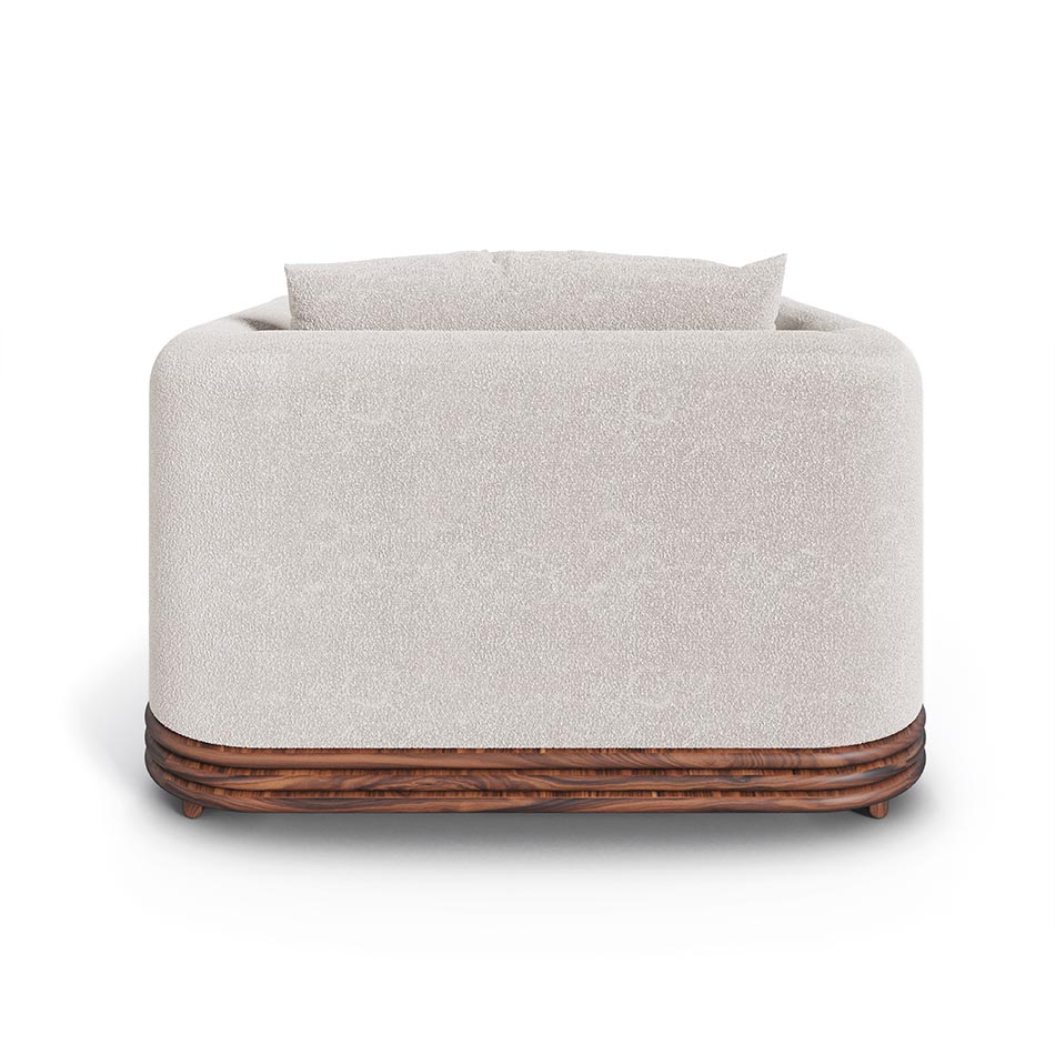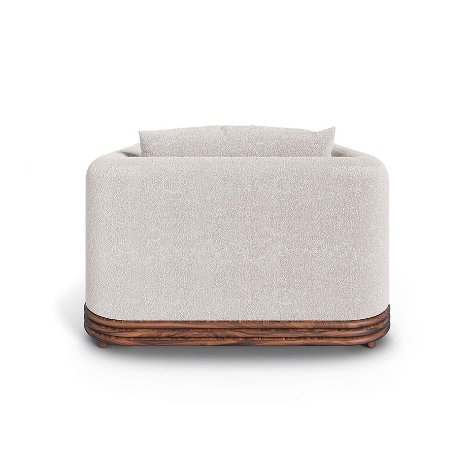 Eva Armchair, where timeless elegance meets unparalleled comfort. Adorned in lavish boucle fabric and accented with rich walnut details, Eva exudes sophistication and refinement, adding a touch of luxury to any living space. Crafted for supreme comfort, Eva boasts three layers on its armchair base, providing optimal support and relaxation.