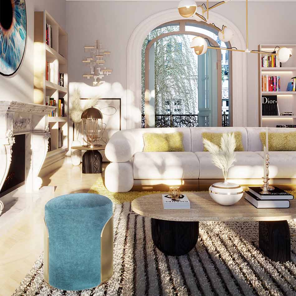 The Fitzgerald stool is a perfect decorative accessory, exuding luxury with a padded body embraced by a metallic shell. Inspired by Italian architecture, it complements any room, from living rooms to hallways. Versatile and unique, this stool adds a touch of elegance to any home design.
