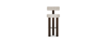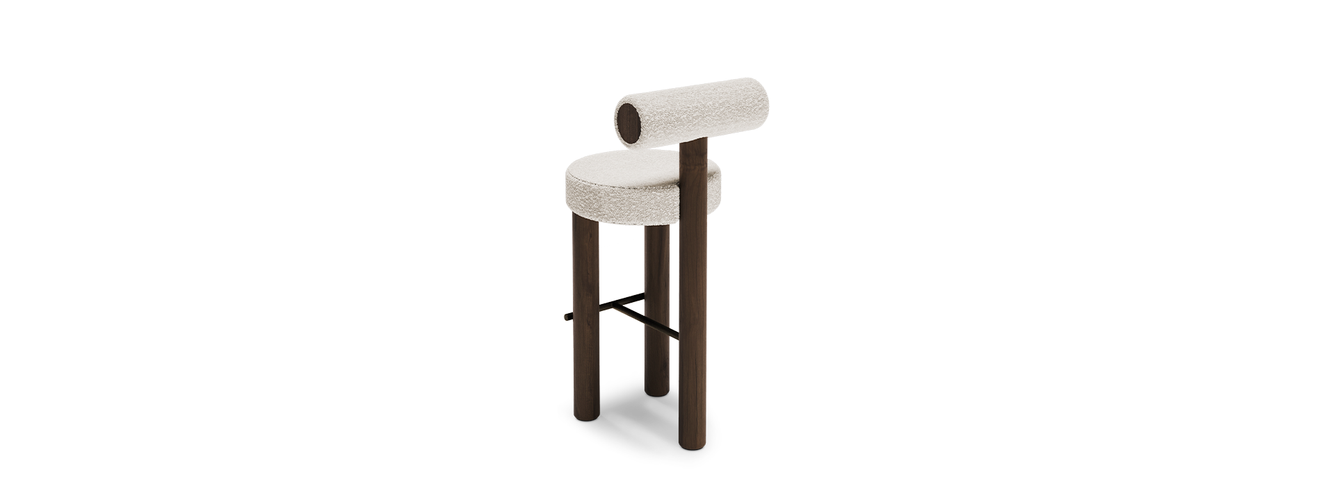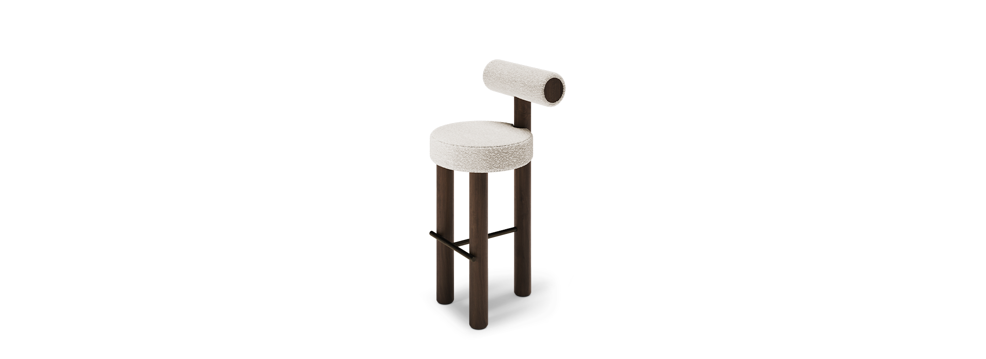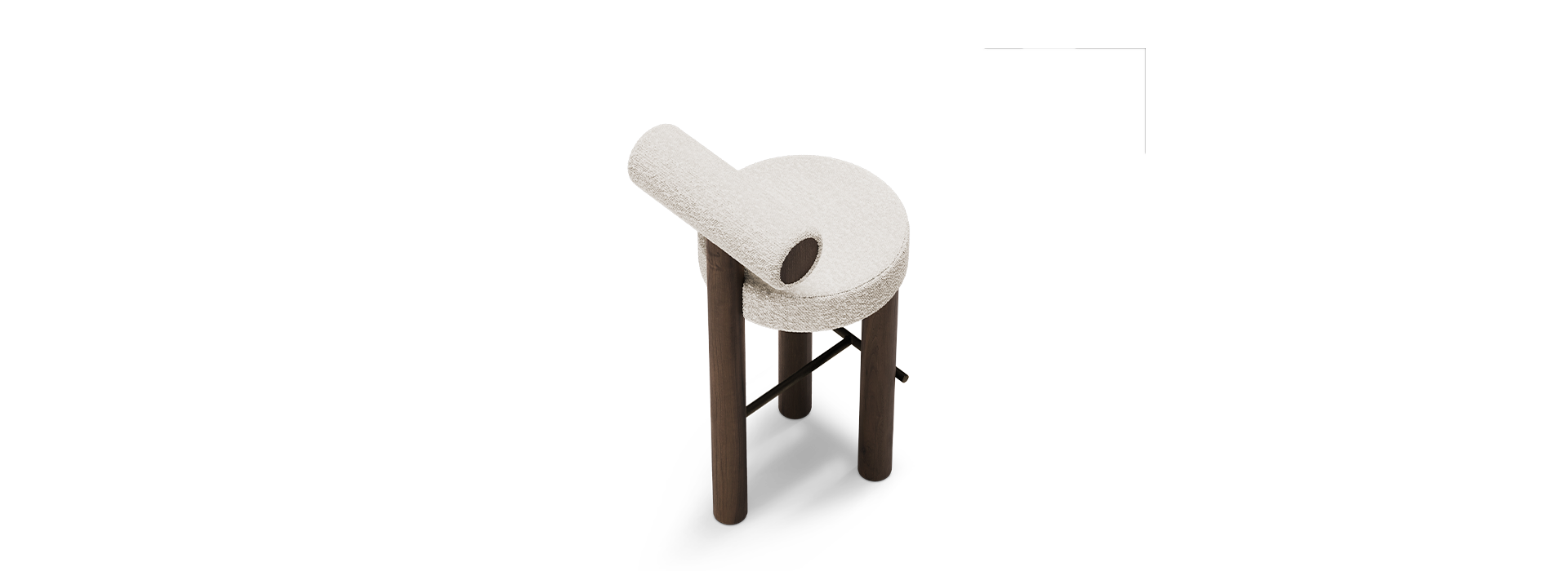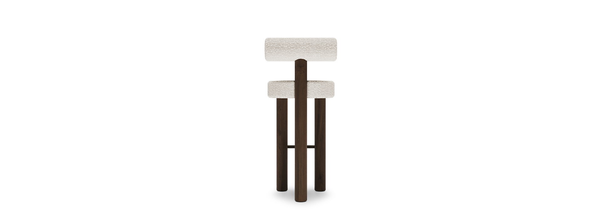 In the Greek Freddo coffee, the hues and colours formed by the iced or cold milk over a scalding hot coffee served as the main inspiration for this item. This chic and minimal bar chair, like the drink, is a sublime and tasteful addition to a dining room or bar atmosphere, with the softness of the boucle seating and back, a walnut stain matte varnish in its two legs, and a long back in stainless steel dark bronze varnish, completing the highly contemporary and minimal design.
