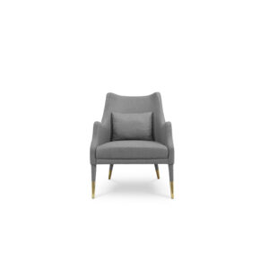 An outstanding piece with a moody and delicate nature that makes this an irresistible armchair. Using a rich upholstered fabric, Grace Armchair has a layered composition, combining a metal base with a wooden back. This mid-century turned modern armchair features a unique design that is highly inspired by the armchairs of the ’50s and ’60s.