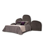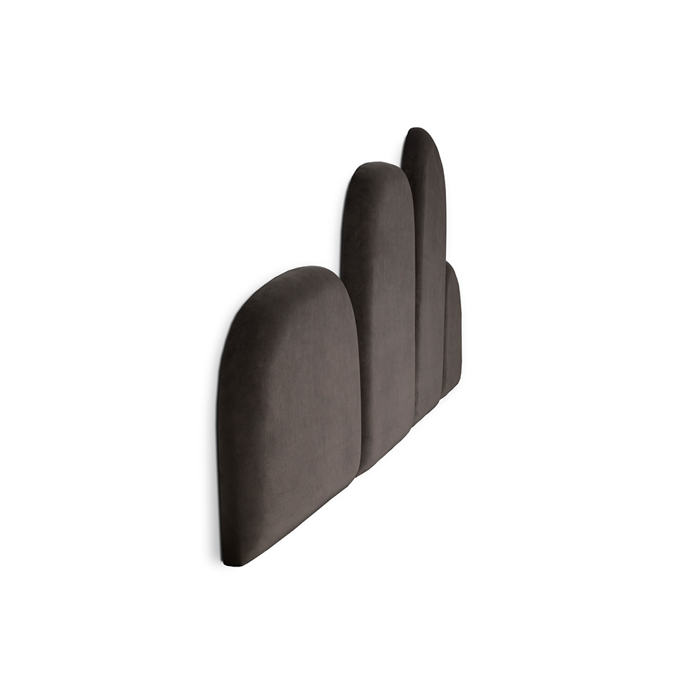 Mount Iraya is an active volcano in the Philippines, whose geological forces, together with the strong waves of sea and time, created a unique shoreline full of large smooth boulders on the beach nearby. Its shapes inspired the curvy silhouette of the IRAYA Headboard: fully upholstered in velvet, this modern headboard will provide an organic element to any modern bedroom design.