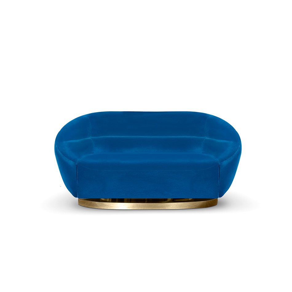 Mansfield is an accent sleek sofa with an undeniable modern elegance. Its rounded forms are a striking addition to any living room, along with the velvet upholstery and the polished brass on the base. The details of the fabric and the design itself are what make people fall in love with this sofa.