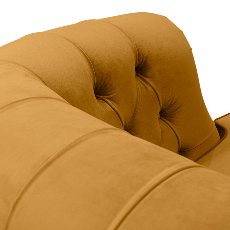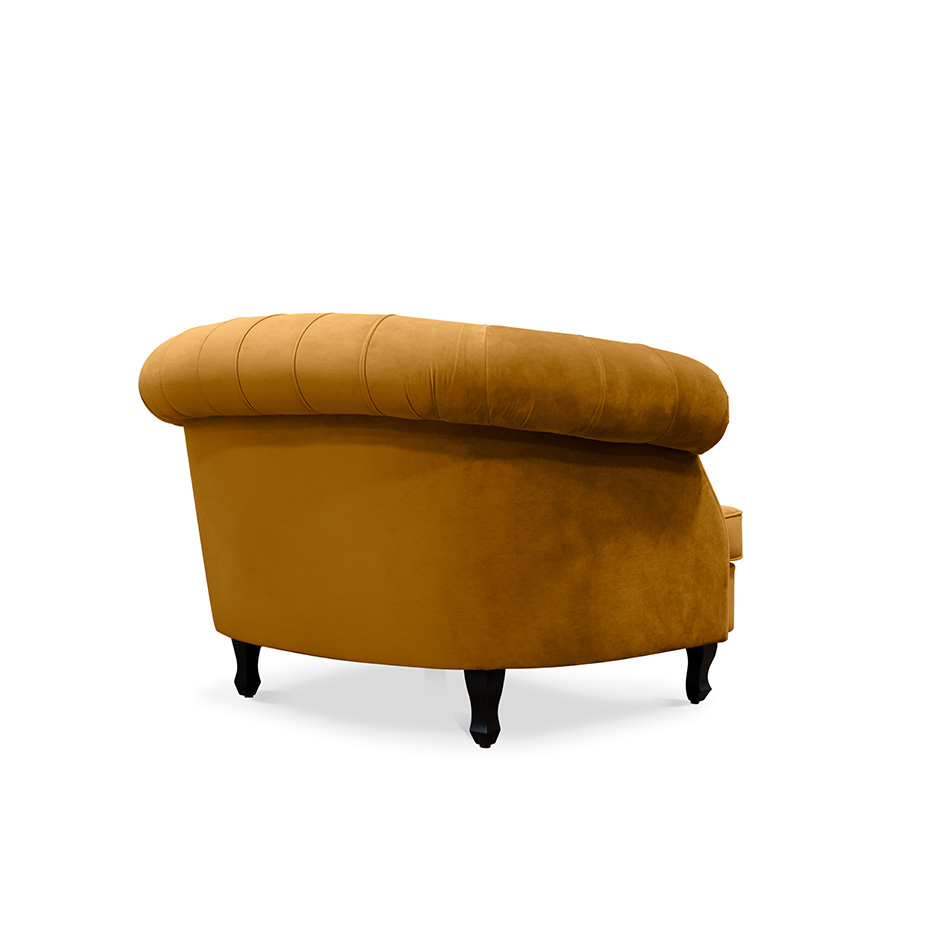 The Scottish Loch Maree is surrounded by a picturesque mountain with a rugged landscape. MAREE Single Sofa portrays that rough landscape softened by the tufted velvet upholstery. This impressive living room single sofa chair gives a modern flair to the classic chesterfield sofa, upholstered in velvet and legs in black matte lacquer.