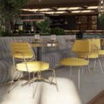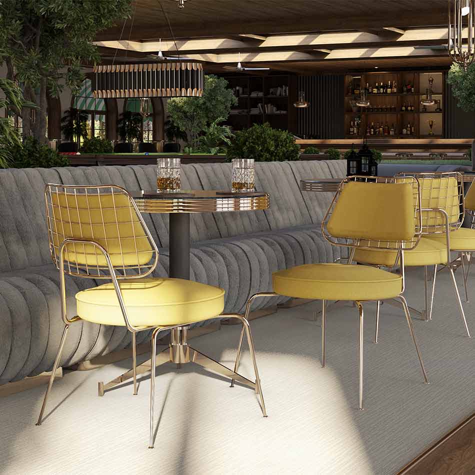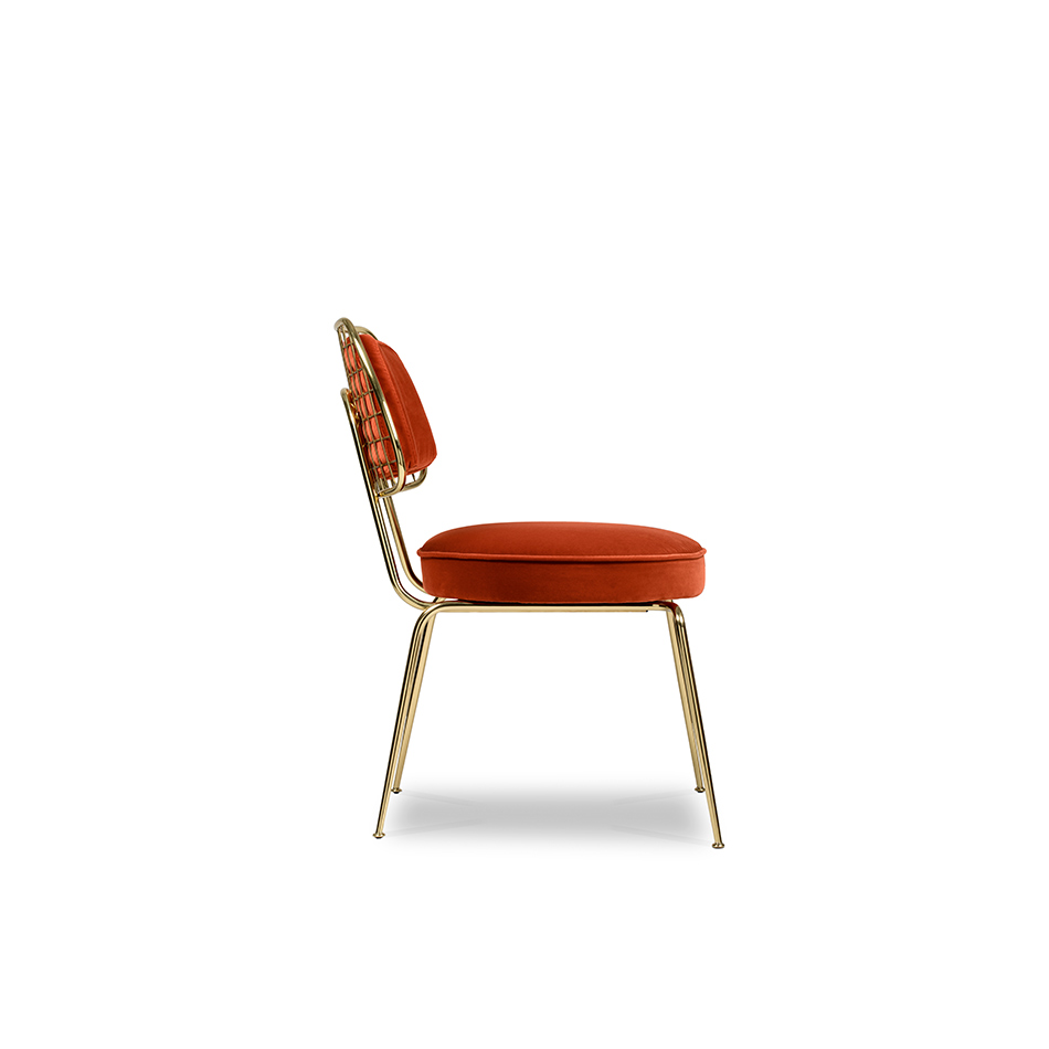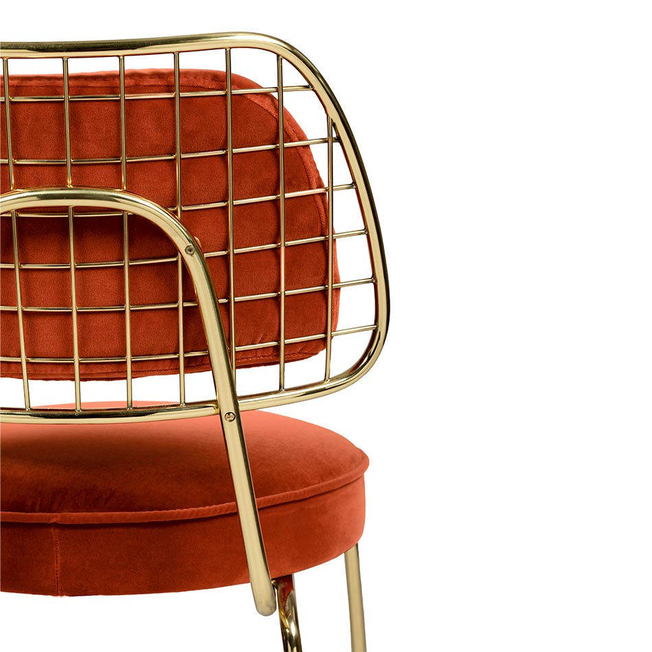 An occasional chair that incorporates all of the mid-century modern elements into a contemporary vision. Features slim metal legs, a round pad upholstered with seductive fabric, and a round back. Due to its design, it can easily be used on any room of your home that you so please, looking always perfect due to its various customization options.