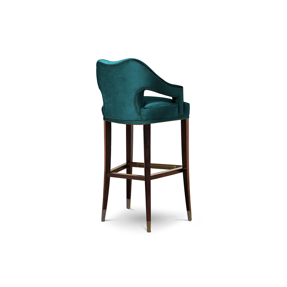 Symbol of knowledge and rebirth, Nº20 Counter Stool was raised through a long journey of 24 prototypes. This blue twill counter stool with legs in ash with walnut stain matte varnish features a nailhead trim that adds subtle sophistication. Full of strength and determination, the Nº20 Counter Stool is sure to impress.