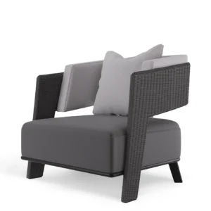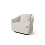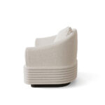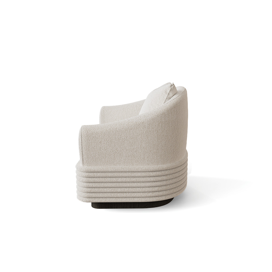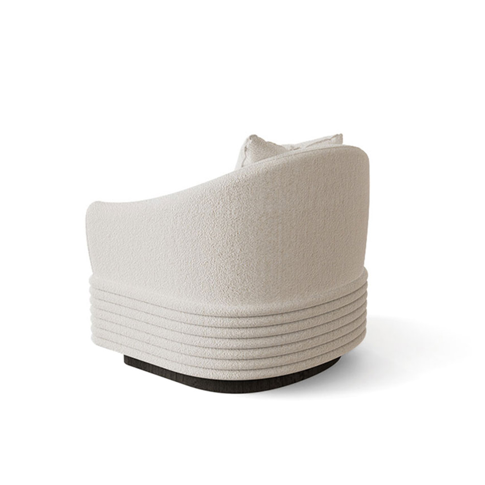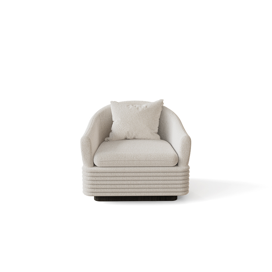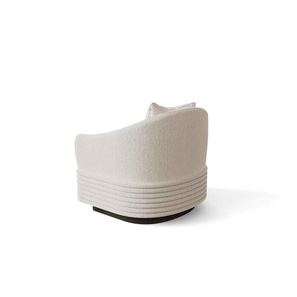 Nina Armchair, a harmonious blend of modern design and luxurious comfort. Wrapped in sumptuous boucle fabric, Nina exudes sophistication and style, adding a touch of elegance to any space. Its chair base in sleek black timber provides a striking contrast, enhancing its contemporary appeal. Designed with seven small layers from chair base to seat, Nina ensures unparalleled comfort and support, inviting you to sink in and relax. Whether as a standalone statement piece or paired with a coordinating ensemble, Nina elevates your living area with its timeless charm and irresistible allure